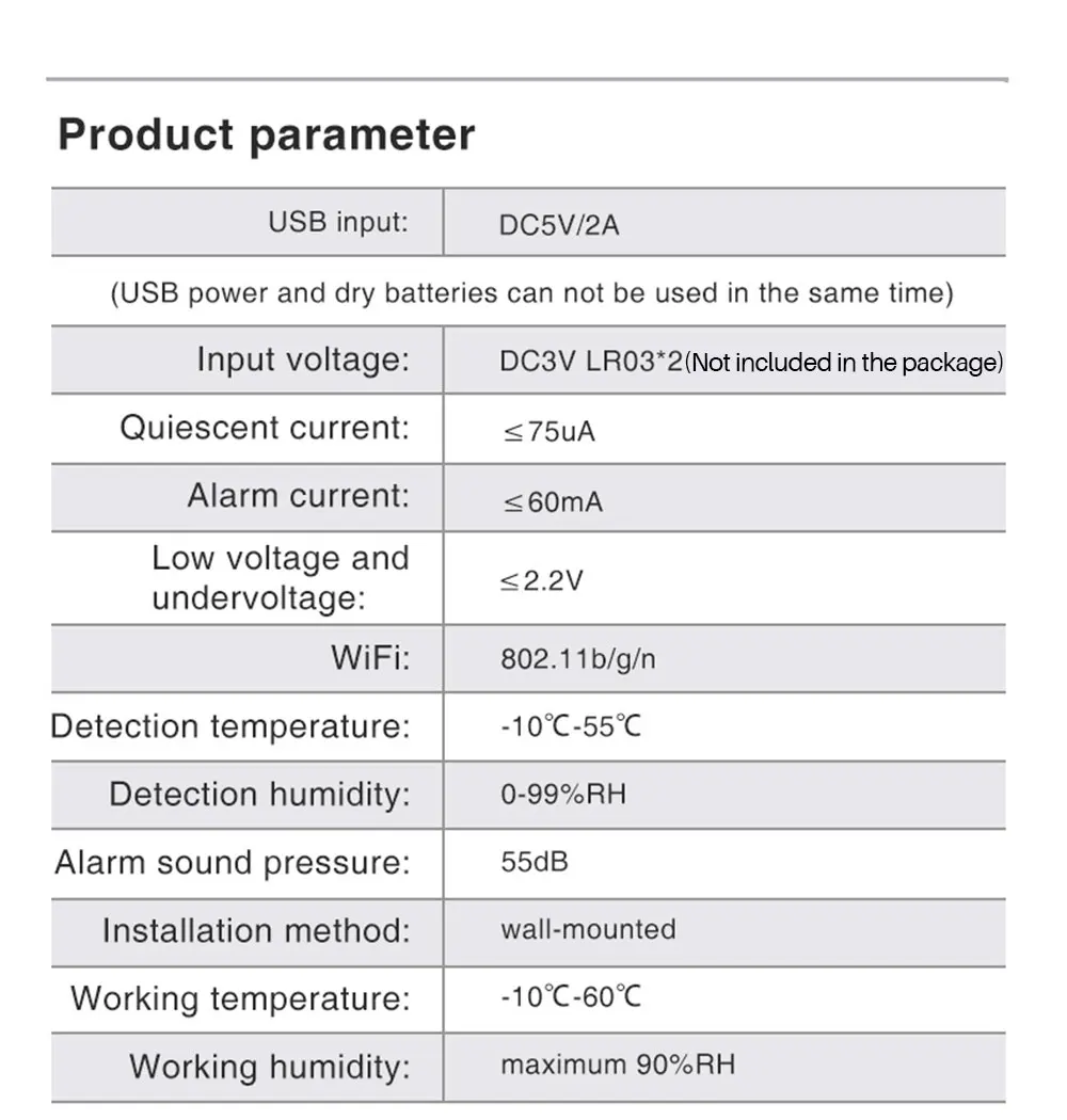 13. Звуковое давление сигнала тревоги: 55 дБ (встроенный зуммер)