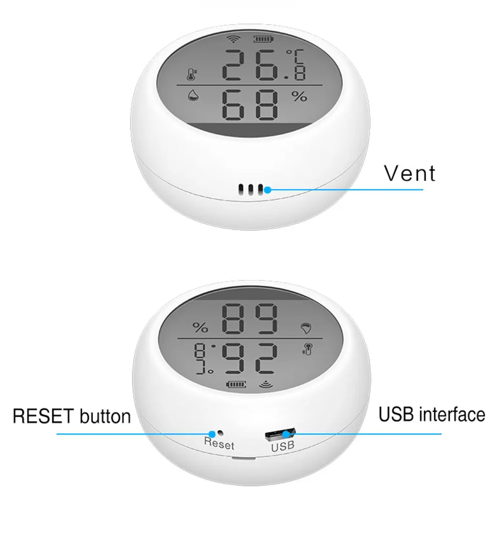 Воспринимайте температуру и влажность окружающей среды в помещении, ЖК-экран динамически отображает значения в реальном времени, создавая комфортную домашнюю среду обитания.