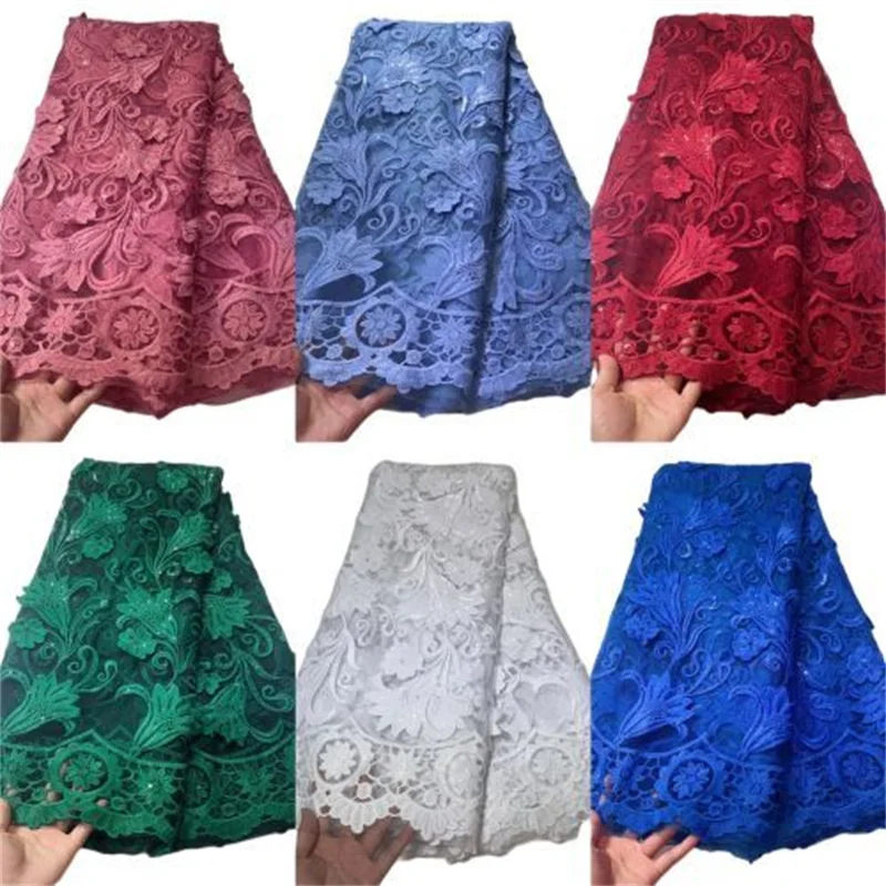 Белая дешевая вышивка французская Тюлевая кружевная ткань с блестками 3D