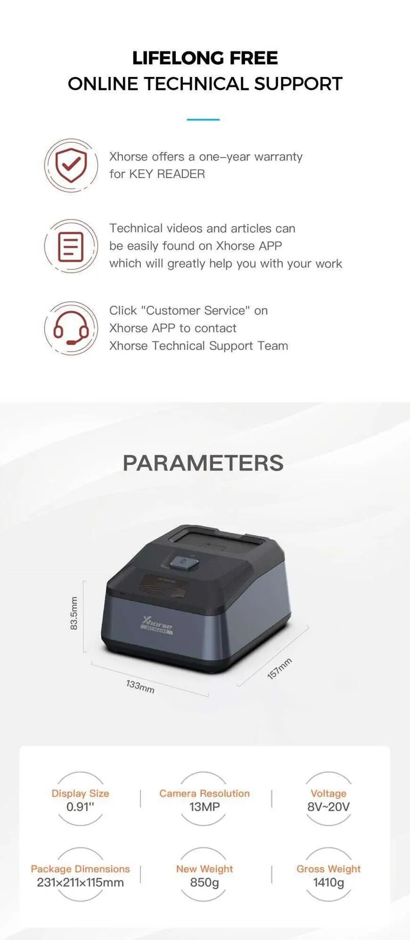 Этот инструмент чрезвычайно удобен и прост в использовании, он предназначен для идентификации ключей с помощью встроенной оптической системы. Пользователи могут получить конкретный ключ биттинга и резки непосредственно через приложение Xhorse или машины для резки ключей Xhorse. Это может сэкономить гораздо больше усилий и обеспечить более легкий и оптимизированный пользовательский опыт.
