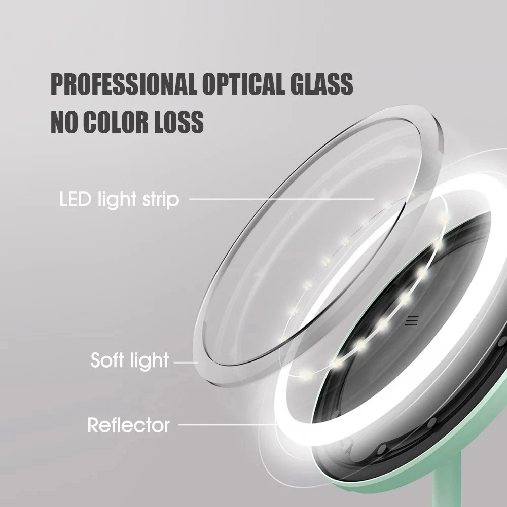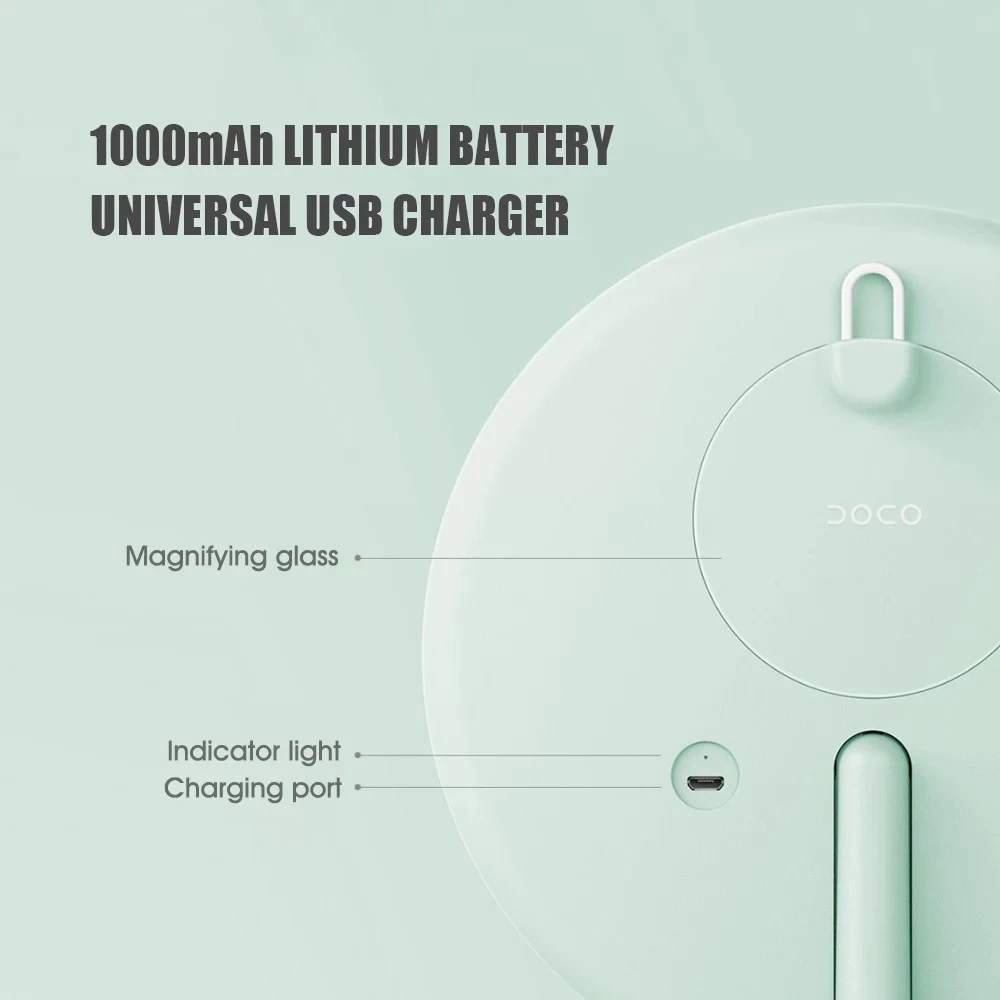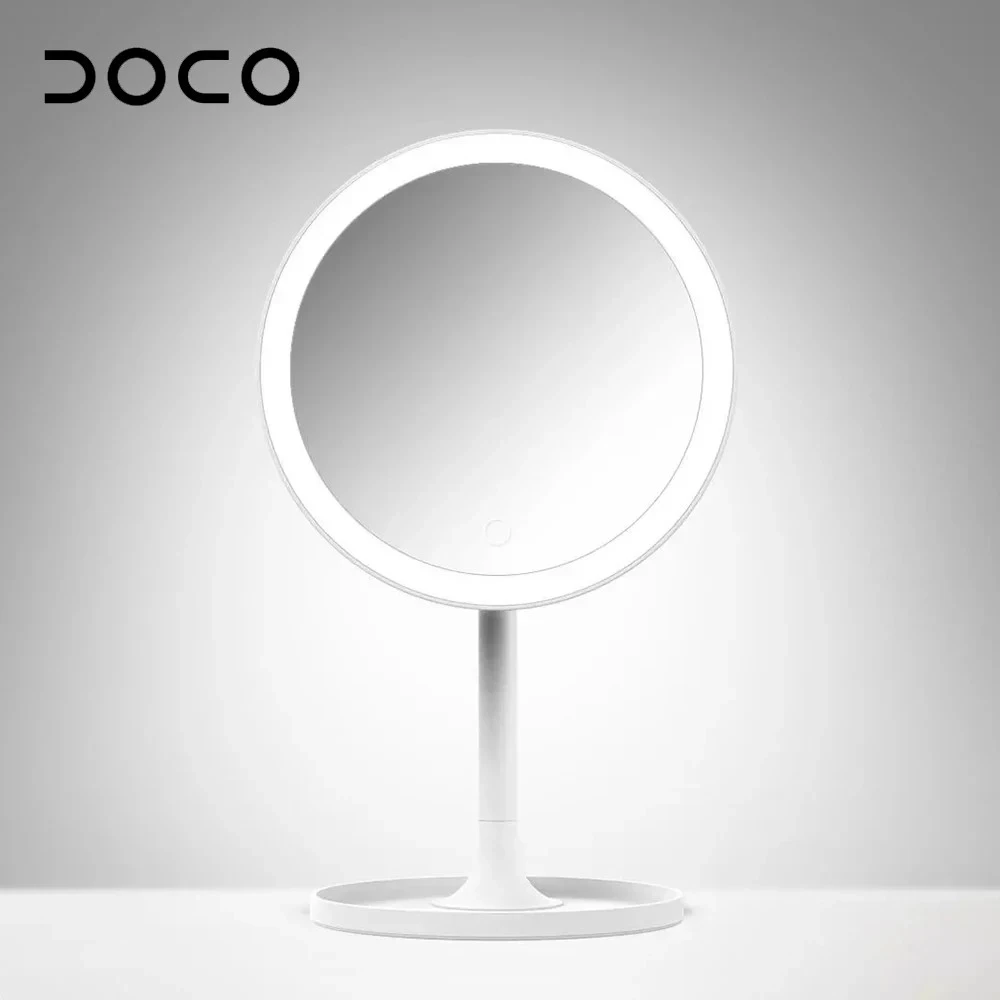 DOCO светильник от солнца, зеркало, которое обещает осветить наше лицо как естественный светильник, напоминающий 85% при создании. Питание от аккумулятора емкостью 1000 мА · ч, зеркало оснащено 3 режимами светильник и регулируется на 90 °, чтобы удовлетворить разную высоту.