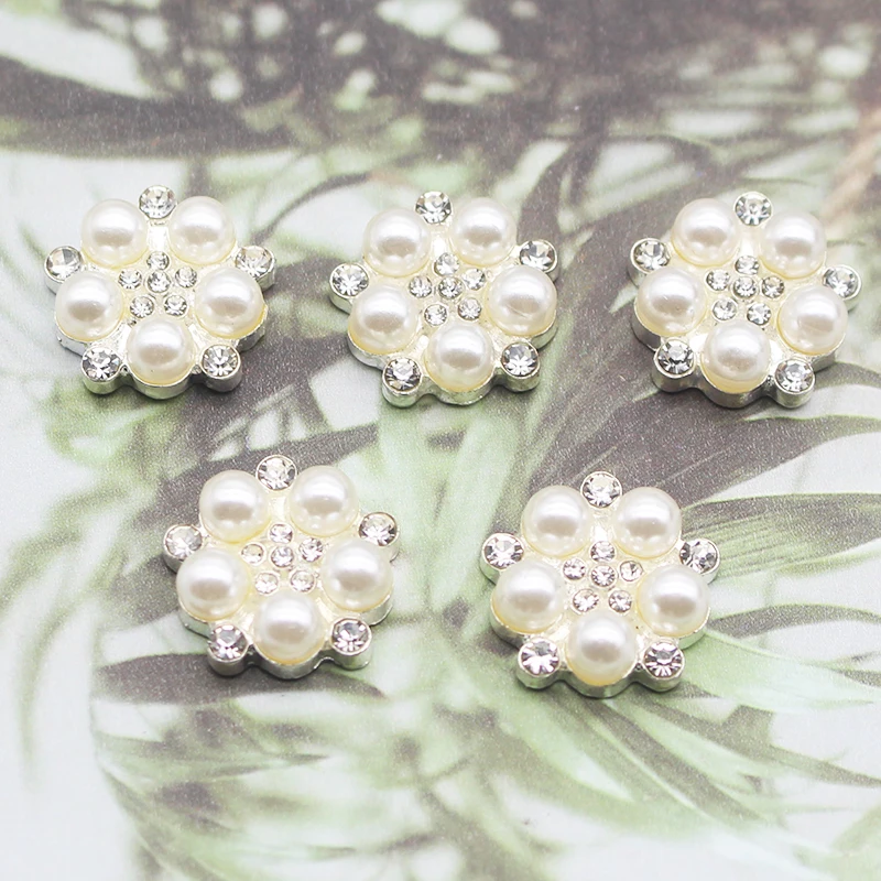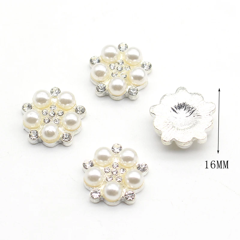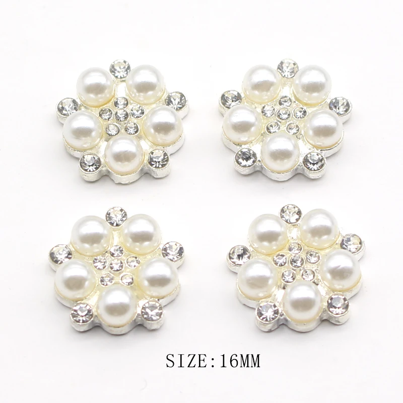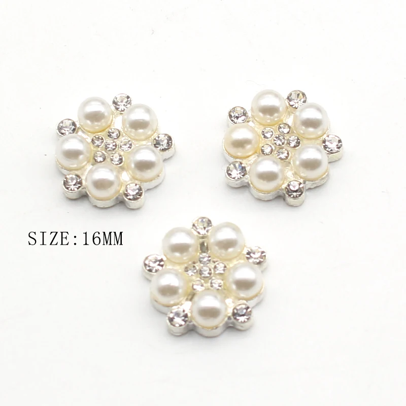 Новинка, 10 шт./партия, 16 мм, металлический сплав, плоская жемчужная пуговица, сделай сам, изысканный ручной работы, кристалл, бант, свадебные украшения, аксессуары