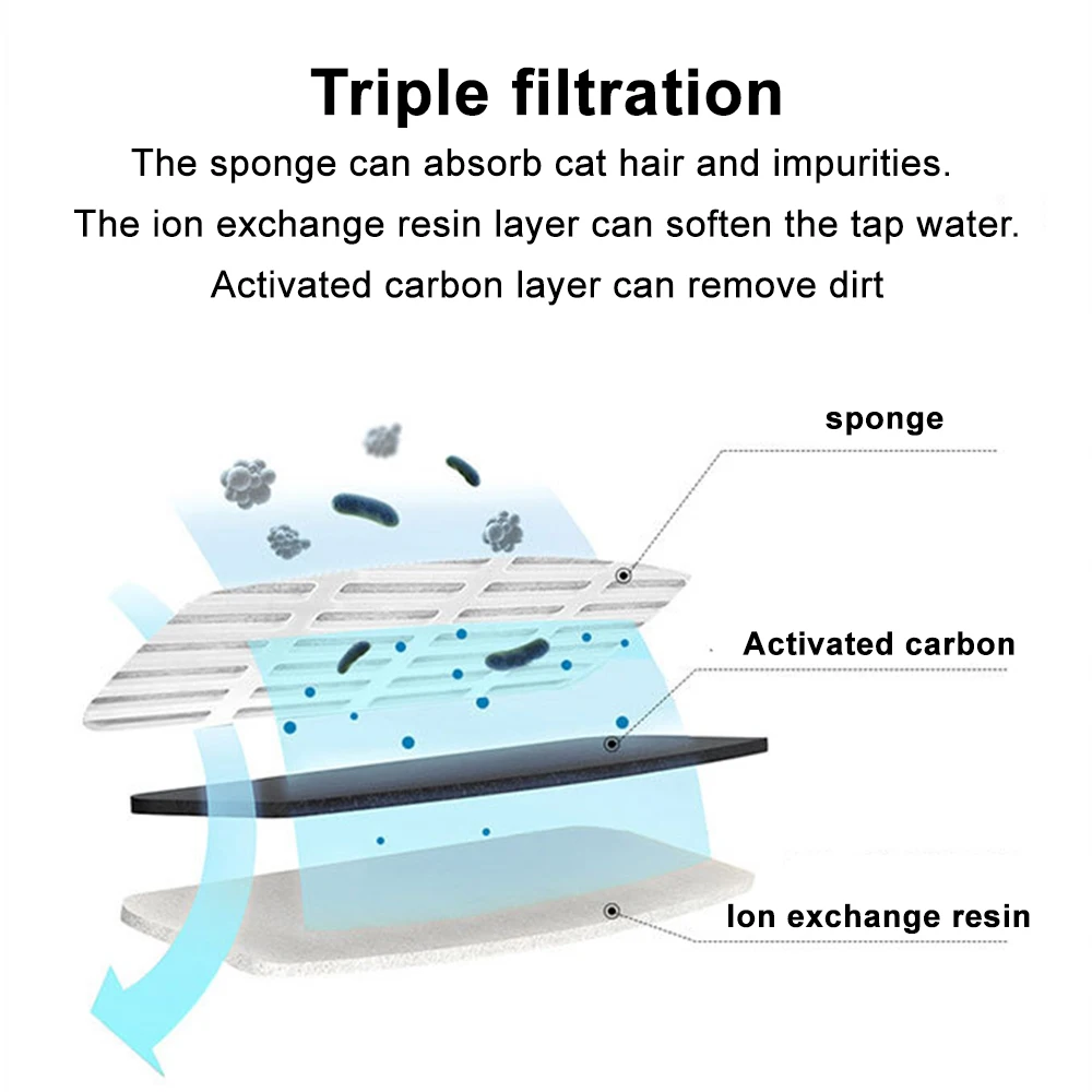 4. Кошачьи волосы и примеси впитываются губкой, ионообменный слой смолы может смягчить водопроводную воду, а слой активированного угля может удалить грязь.