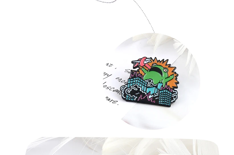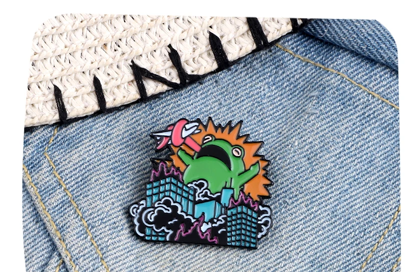 Cartoon Frog Warrior Brooches Enamel Pins Angry Animal Monster Destroy City Badges Pin Clothes Lapel Jewelry Gifts For Women Men