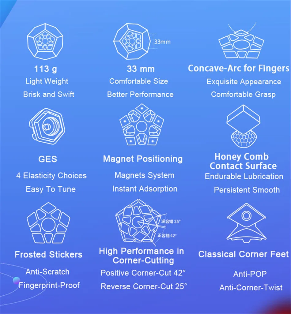 Описание товара GAN Megaminx был одним из самых ожидаемых meagaminxes для выхода на рынок, и это, наконец, здесь! Эта быстрая, легкая головоломка поставляется со многими высококачественными функциями, такими как Сменные GES V3 для всех 12 центров, магниты средней прочности для стабильности и яркие оттенки без наклеек для лучшего распознавания. GAN Megaminx поставляется с матовым пластиком, который изнашивается с течением времени, чтобы создать глянцевое покрытие. Части слегка вогнуты, чтобы помочь с захватом во время решения. Поставляется с: GAN Megaminx Два набора гаек гес V3 с инструмент для натяжения (достаточно для 12 сторон) Прозрачный чехол megaminx Сумка-головоломка GAN Специальная карта GAN Megaminx Гановая инструкция брошюра Характеристики продукта Производитель Ган Тип Megaminx Добавлен 2019-07-01 Вес брутто 375 г Магниты Магнитный Вес изделия 115,5 г