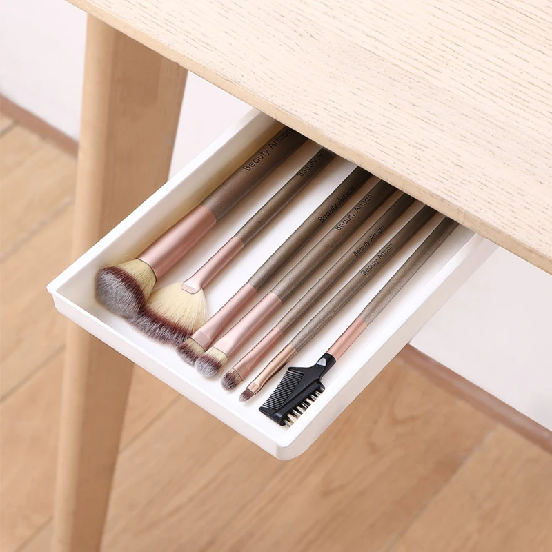 2. Оторвите ленту с задней стороны и нажмите поднос на стороне под столом.