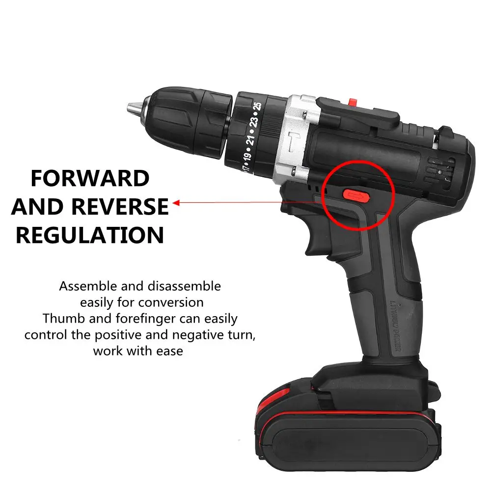 Электрическая дрель три функции с ударом 6000mAh 21V два заряда или Одна зарядка Особенности -Питание от литий-ионной аккумуляторной батареи, обеспечивает более длительное время работы и большую мощность -Высокая эффективность двигателя, обеспечивает до 28N. М крутящего момента и 0-1450r/мин скорости -Сверлильный патрон для быстрой и простой замены бит -Использование вперед/обратный переключатель, 25-скорости крутящего момента -Переключатель вперед/назад может быть установлен в трех положениях: Вперед, назад и замок. Из-за блокировочного механизма, передний/обратный переключатель может быть отрегулирован только тогда, когда триггер не нажат. Перед использованием переключателя вперед/назад двигатель всегда должен полностью останавливаться. -Светодиодный Светильник обеспечивает освещение в темных пространствах при работе -Эргономичная удобная ручка обеспечивает идеальный баланс и контроль инструмента -3 этапа настройки: ударное сверление, плоское сверление и поворотные винты Характеристики: Наименование: электрическая дрель Напряжение батареи: 21 в Максимальный крутящий момент: 25-28 нм Без скорости нагрузки: 0-450р/мин, 0-1450р/мин Вход: 110-240 в 50-60 Гц Выход: 1.3A Посылка включает в себя: 1 электрическая дрель 1 х адаптер питания 1 или 2 батареи 1 Набор буровых головок Предупреждение Чтобы уменьшить риск травм, надевайте защитные очки или очки с боковыми щитами. Примечание: 1. Замеры сделаны вручную, поэтому возможны 0,5-1 см из-за различий в связи с тем, что измерения выполнены вручную. 2. В связи с использованием разных по светильник экране монитора фактический цвет товар точно такой же, как и цвет изделия на фото может быть s светильник ly отличается из-за характеристик монитора компьютера. |