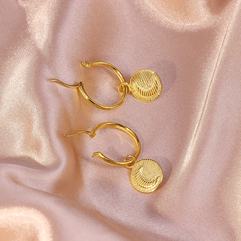 925 пробы Серебряный этнический мужской портрет лицо Солнце Луна морская волна узор диск очаровательные Подвесные серьги женские пирсинг Pendientes