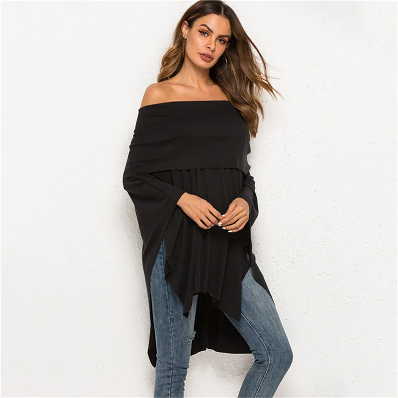 Женская осенне-зимняя футболка с геометрическим принтом и V-образным вырезом