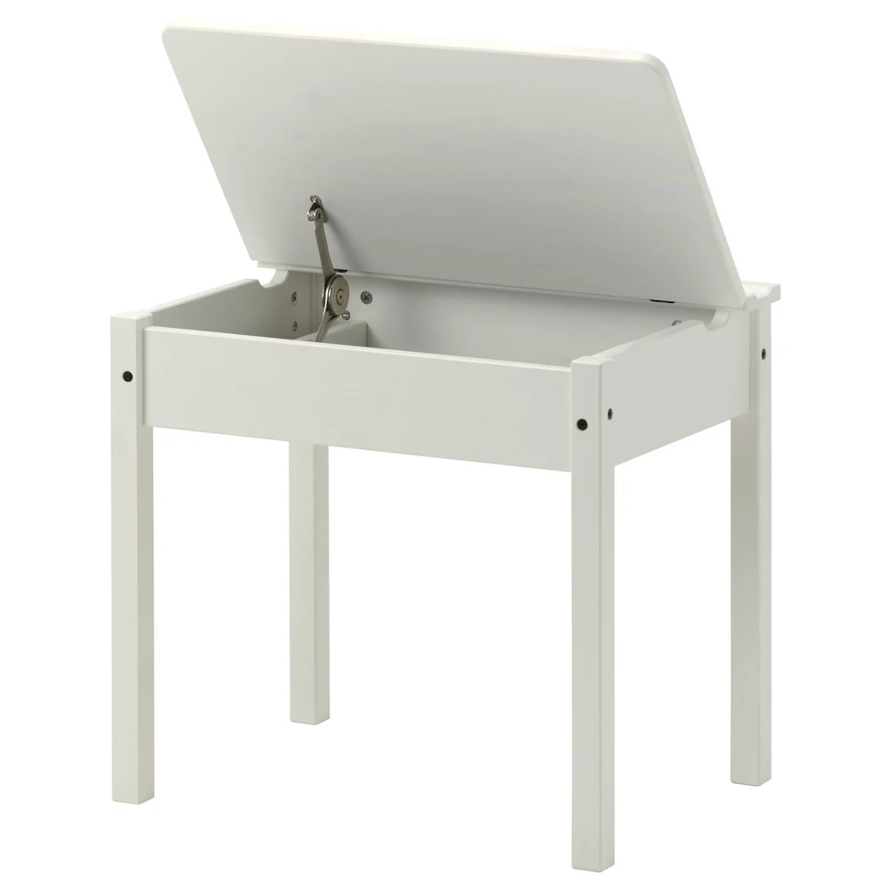 Under the table top is a large compartment for A3 paper and a small compartment for pencils and pens.