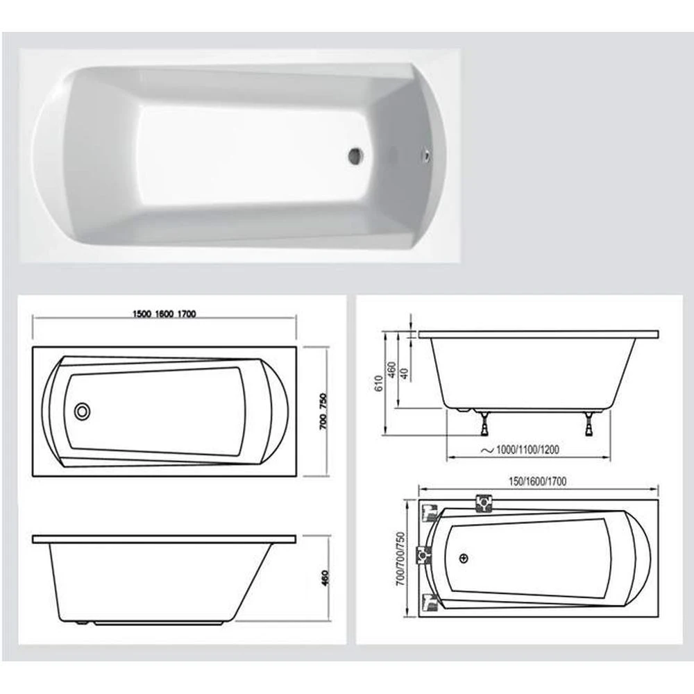 | Комплектация | Ванна DOMINO PLUS 170х75 белая Опоpная констpукция универсальная 75 Сточный комплект хpом II (квадратный) |