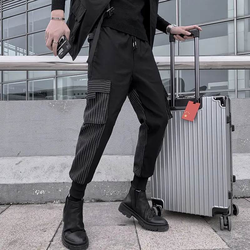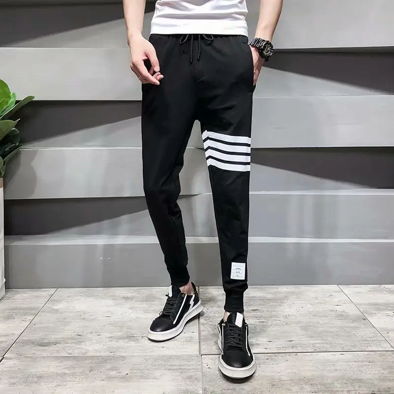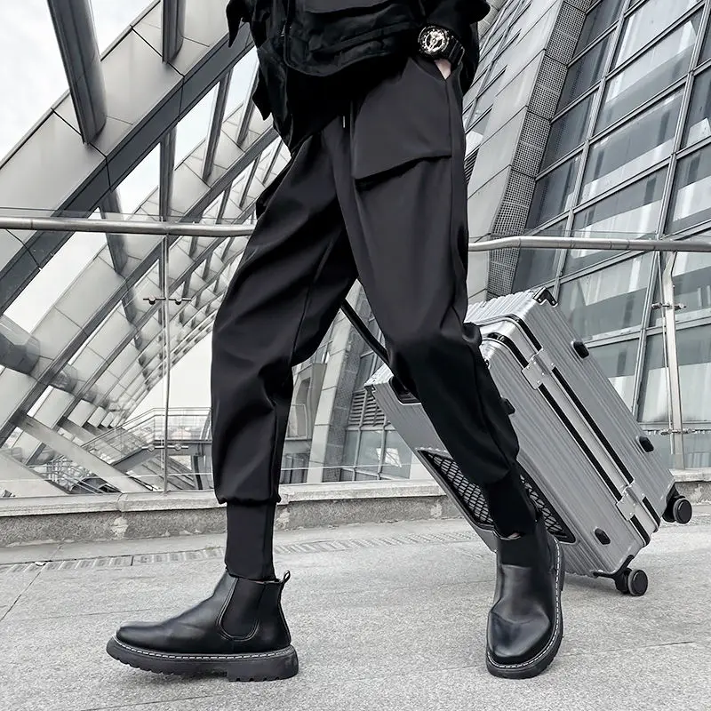 Брюки мужские однотонные прямые повседневные свободные штаны с эластичным
