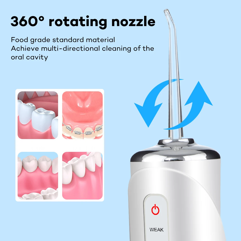 Вращающееся на 2,360 ° сопло, пищевой стандартный материал, безопасный и экологически чистый, вы можете быть уверены, что рот можно очистить в нескольких направлениях.