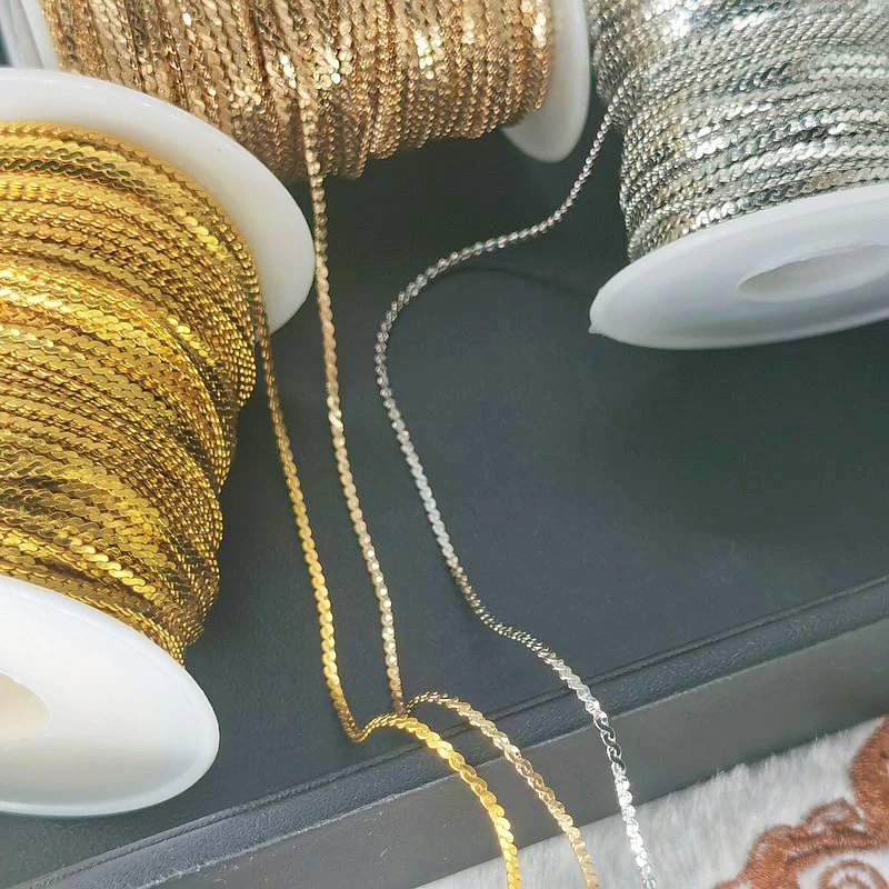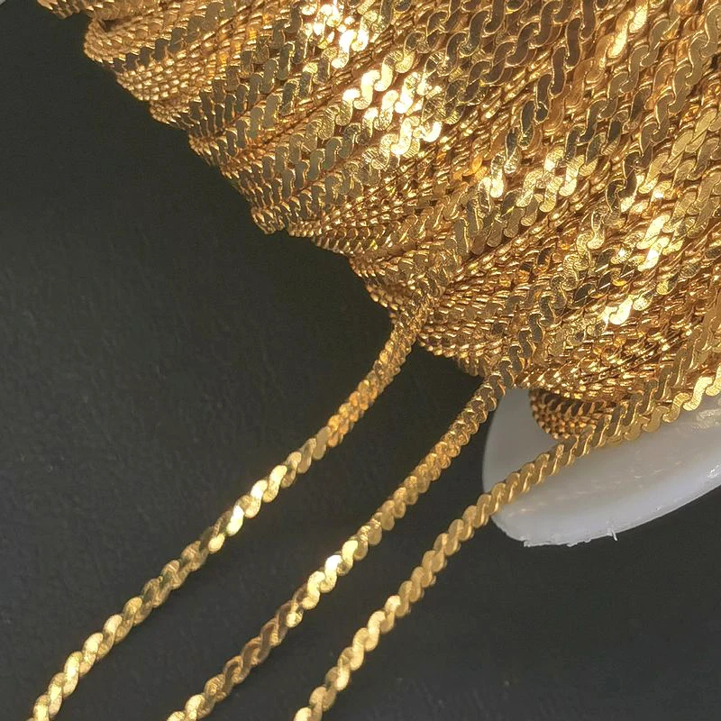 Без выцветания, 1 метр, Золотая плоская цепочка для ожерелья, металлическая медь, Rolo, Кабельные цепи, ювелирное изделие, комплектующие, цепочка для рукоделия, сделай сам