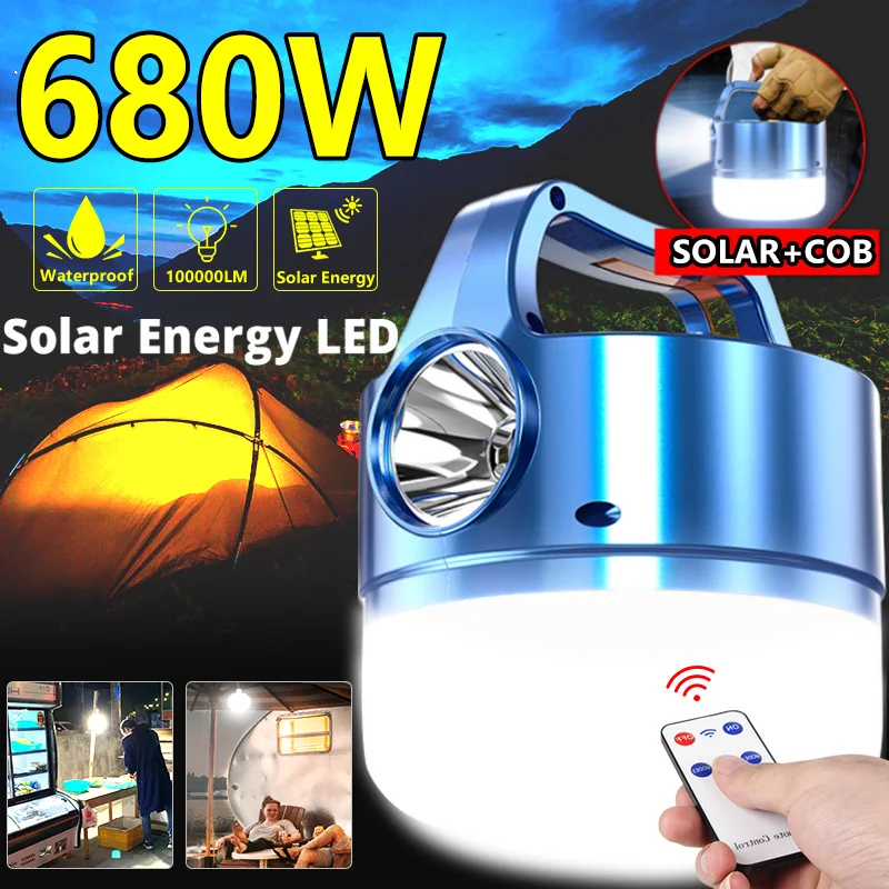 Солнечный тент светильник s супер яркий светодиодный точечный светильник портативный аварийный ночной рынок светильник наружный кемпинговый светильник s с дистанционным управлением