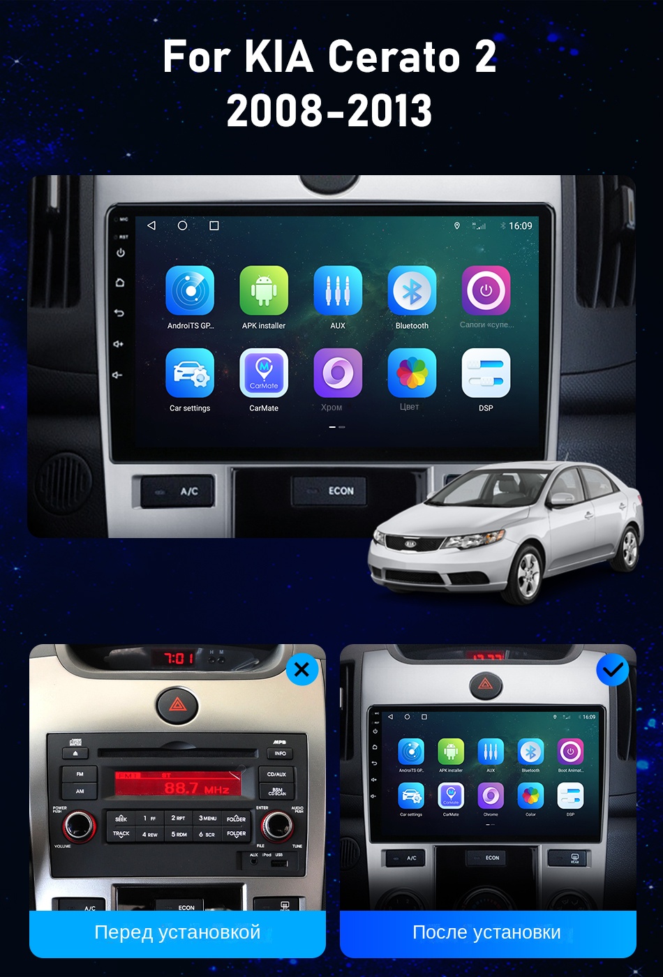Не включая canbus, не поддерживает оригинальную автомобильную камеру и оригинальный автомобильный усилитель и т. д.