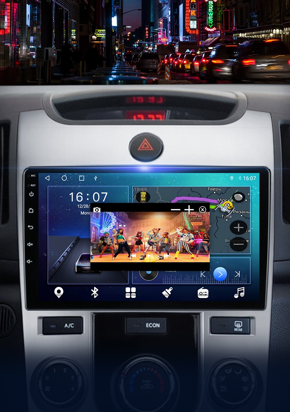 Поддержка видео и приложения DVRПлавающего окна, настроить положение дисплея и сделать ваш опыт вождения полон прохладных цветов.