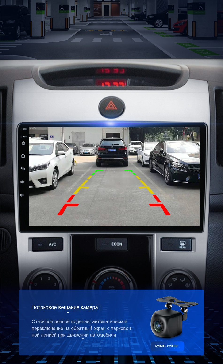 Поддерживает неоригинальную камеру заднего вида