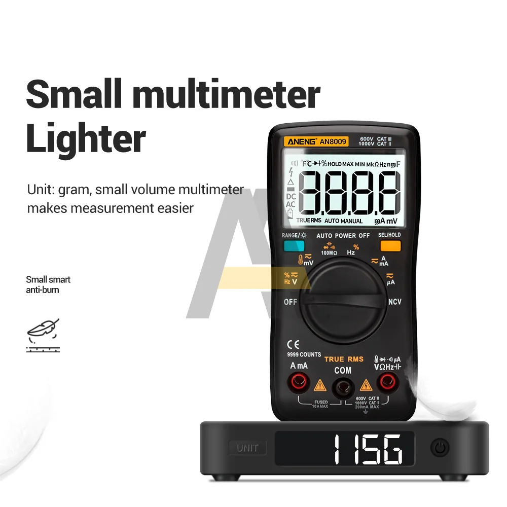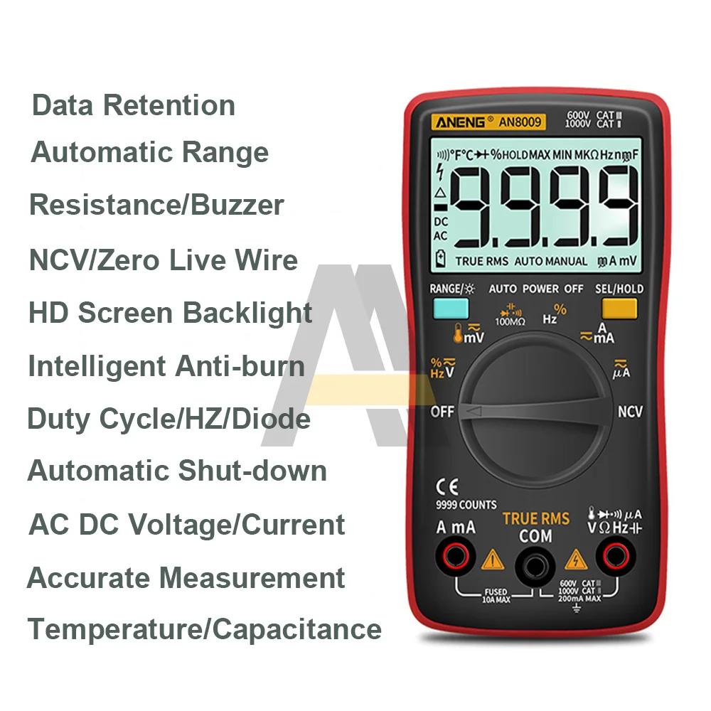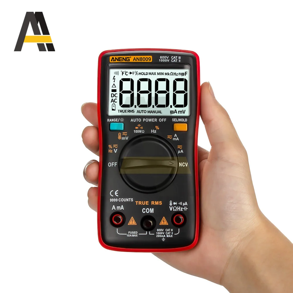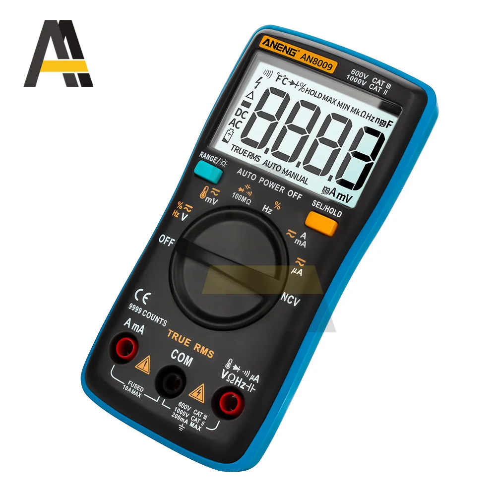 Цифровой мультиметр 9999 отсчетов подсветка AC/DC Амперметр Вольтметр Ом портативный измеритель напряжения NCV/нулевой провод/Гц/Диодный тестер