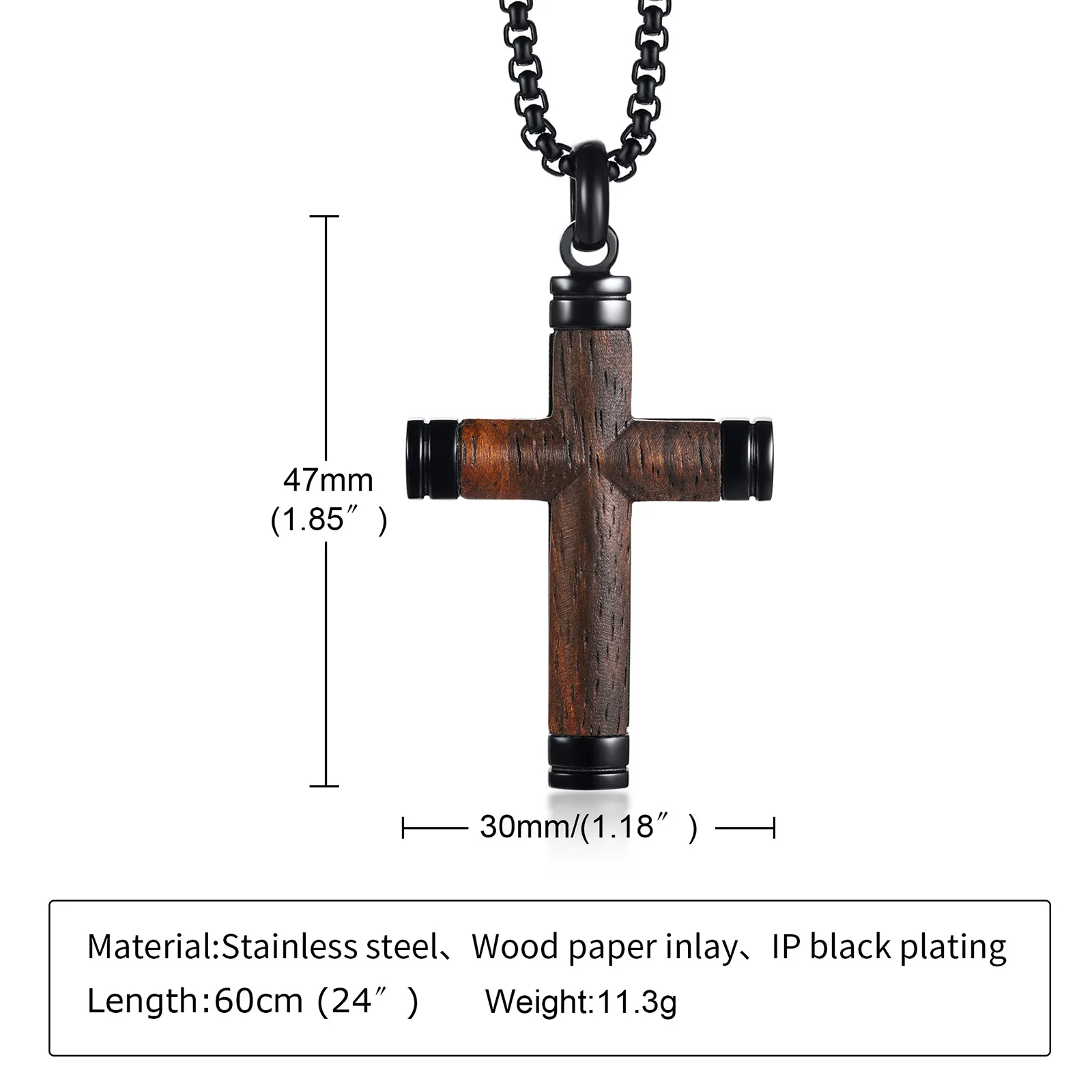 Черный цвет крест кулон ожерелье ювелирные изделия для мужчин мальчик подарок настоящая деревянная инкрустация нержавеющая сталь шею цепь новое поступление