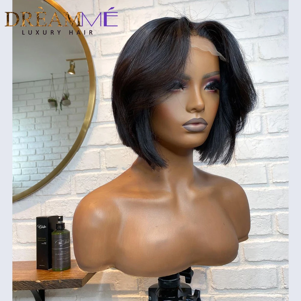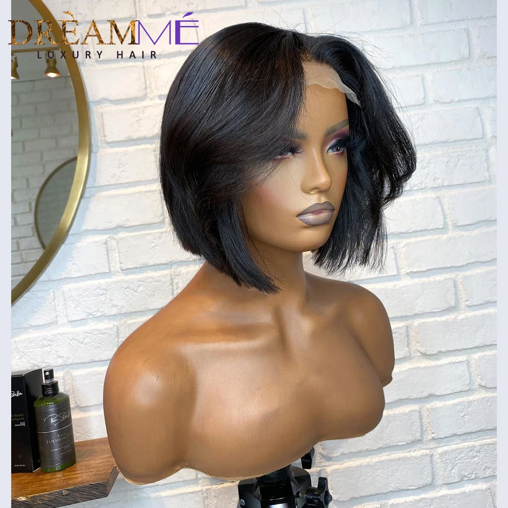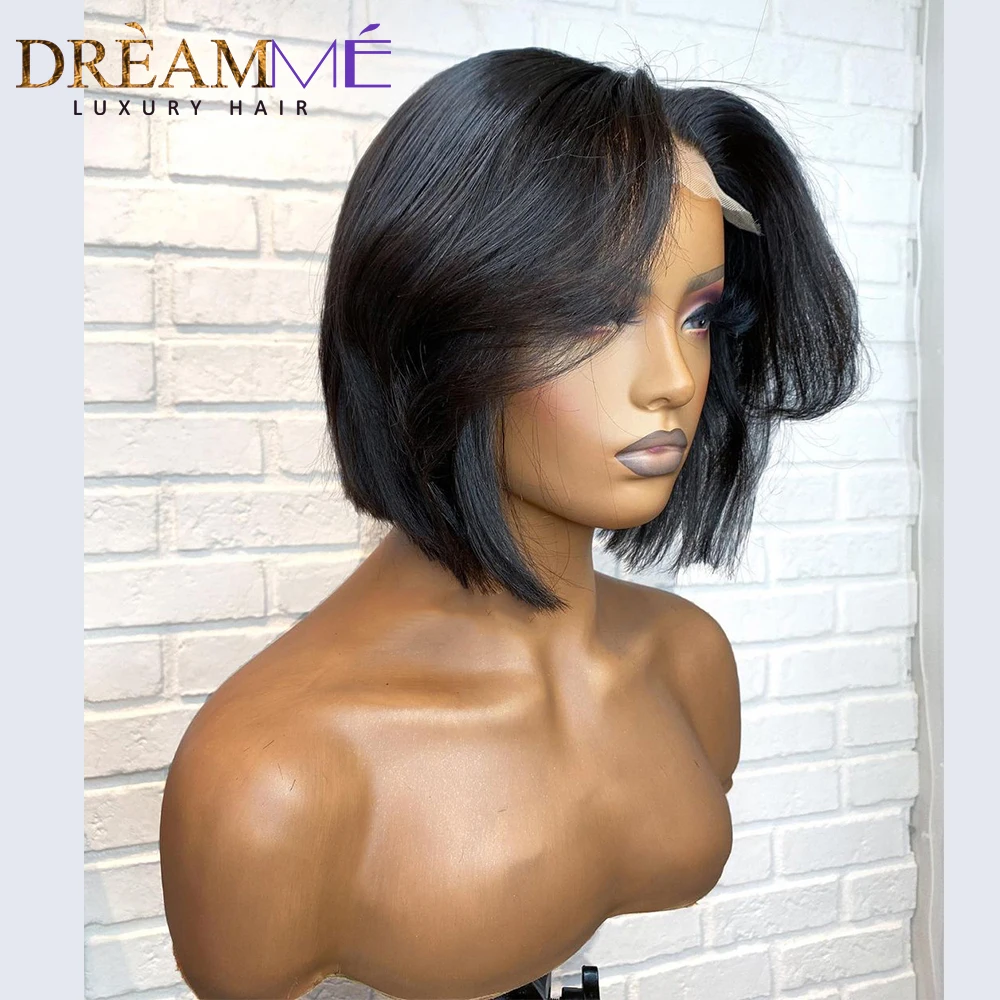 Короткий парик из натуральных волос Боб Пикси прямые волосы Remy бразильский натуральный цвет 4 x4 парик на шнурке для женщин 150% Плотность preprucked