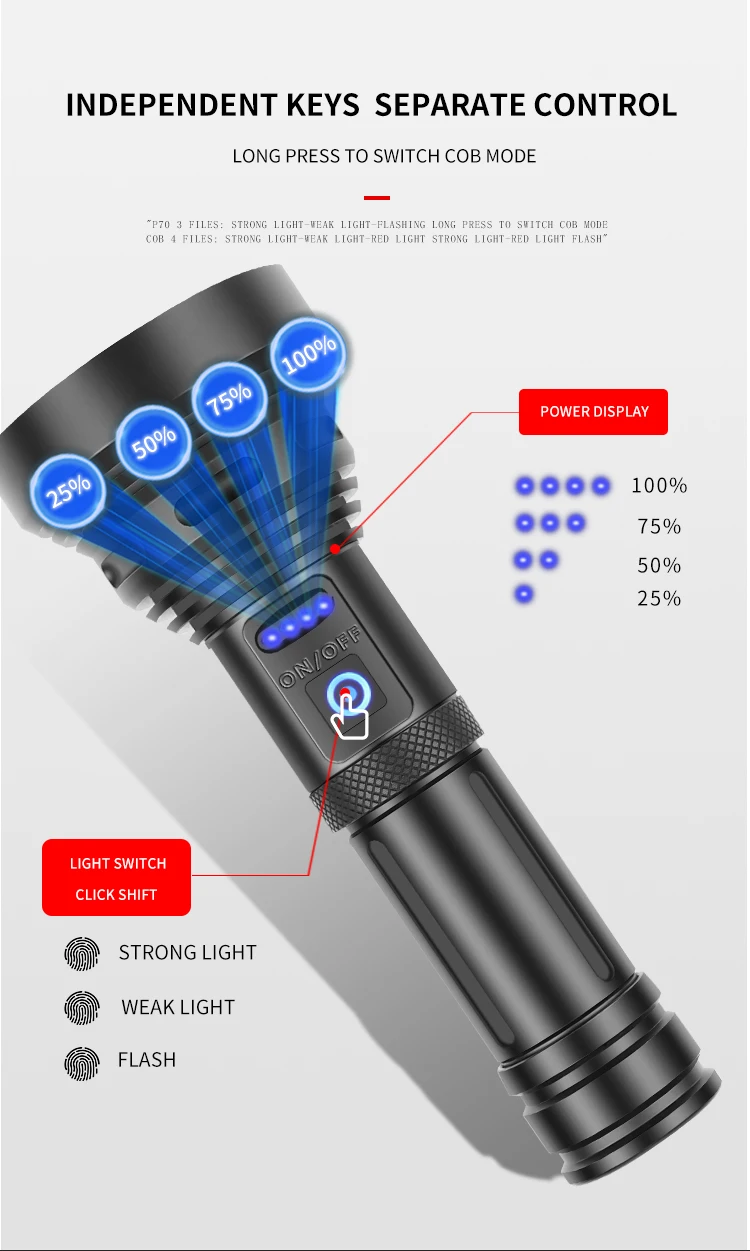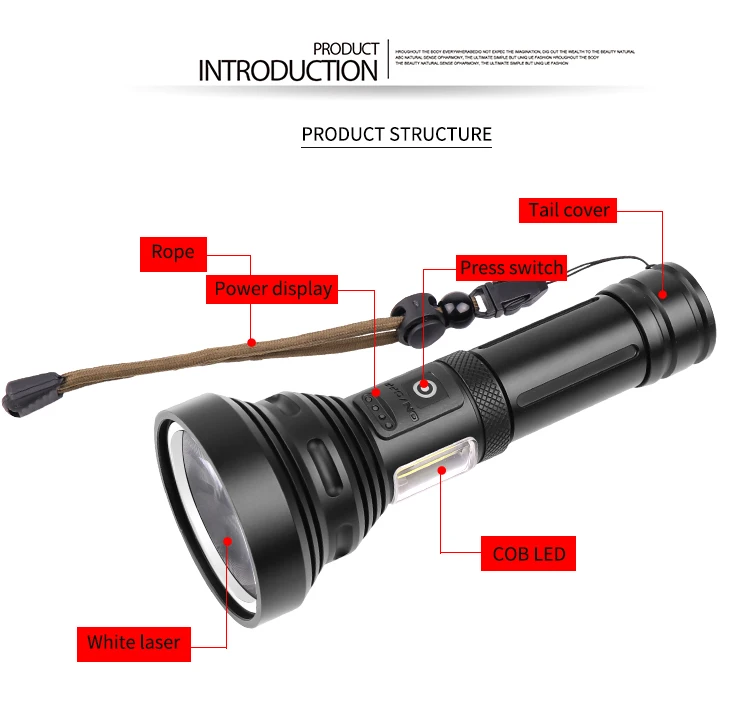 5. Белый лазер 3 уровня: сильный светильник + низкий светильник + мигающий двойной кран для переключения режима COB Длительное нажатие для выключения