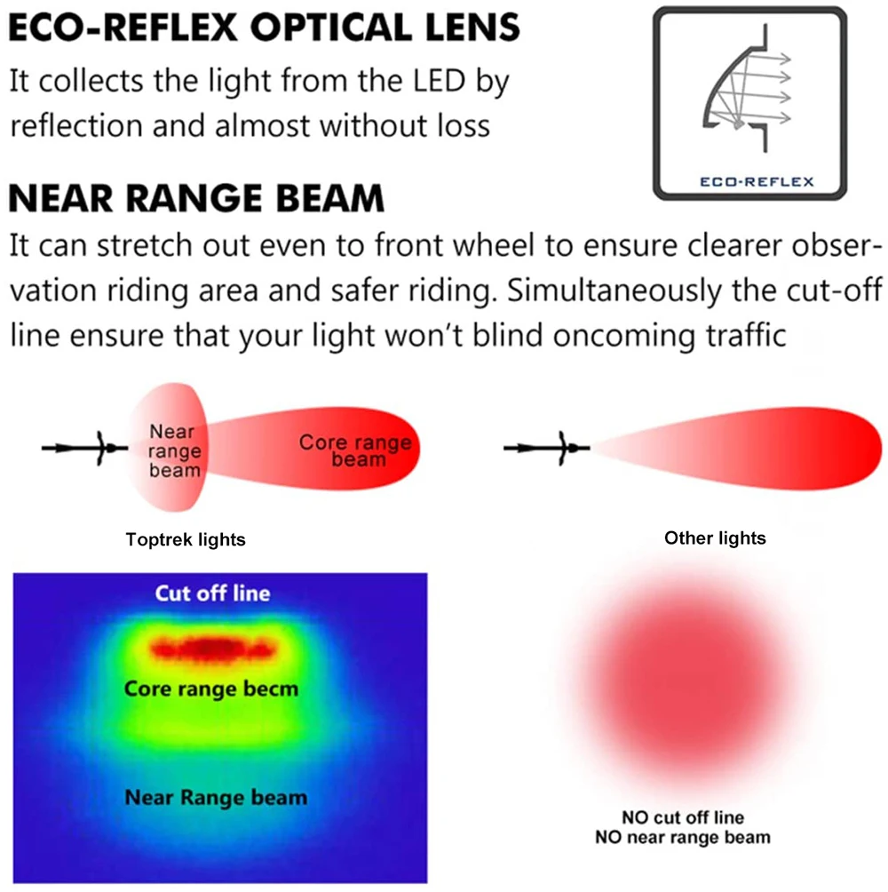 Велосипедный светильник Toptrek разработан строго в соответствии со стандартами немецкого транспортного права. С CE, ROHS сертификацией и одобрением немецкими правилами дорожного движения (передние фары ~ K1685, задние фонари ~ K1680). Обеспечивает надлежащую защиту при езде ночью
