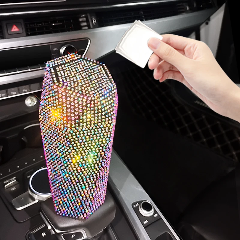 Автомобильный блеск сверкающий милый автомобильный мусорный бак с крышкой подстаканник милый Шикарный Розовый Синий Черный Зеленый Красный на выбор