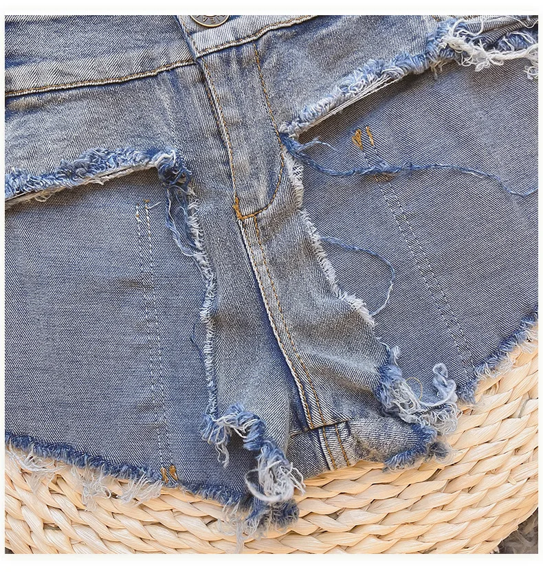 Летние сексуальные женские рваные черные джинсовые шорты ажурные бандажные