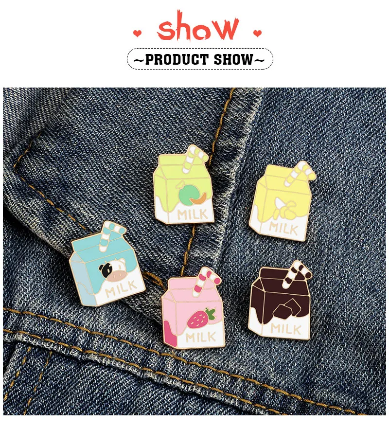 Милая молочная коробка, броши, сладкая клубника, банан, шоколад, фрукты, напитки, эмалированные булавки, рубашка, сумка, Нагрудный значок, ювелирное изделие, подарок для детей