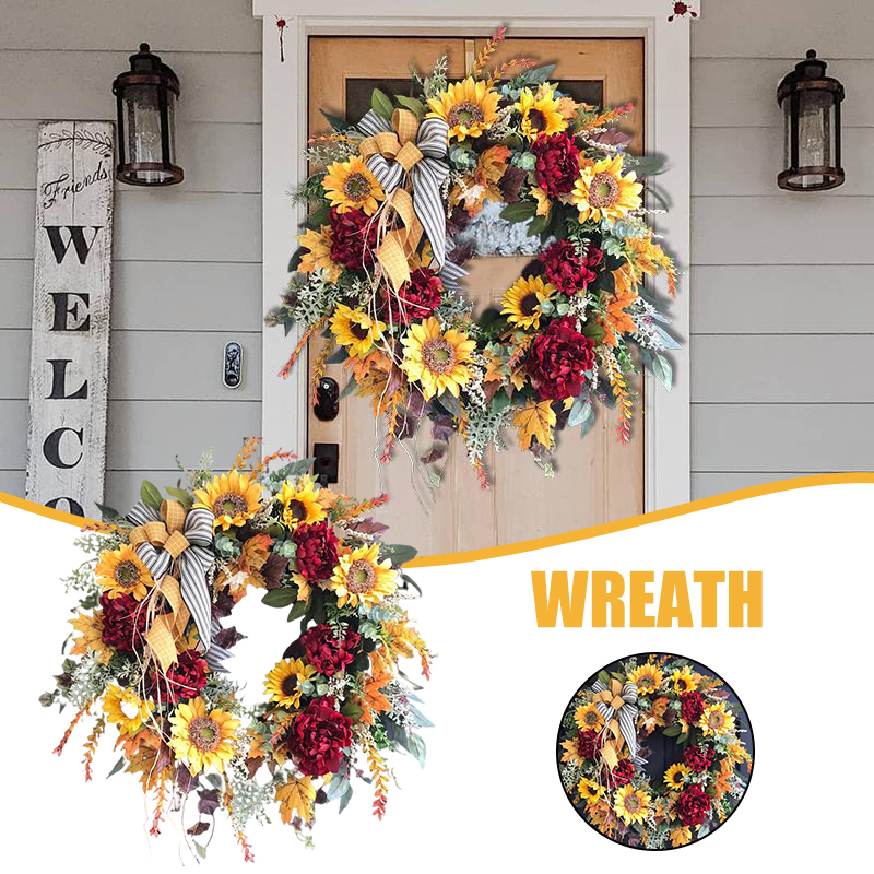 Венок из подсолнухов кантри французский венок поддельный цветок Добро Пожаловать Знак гирлянда висячая передняя дверь Декор для дома вечерние 40 см DIN889