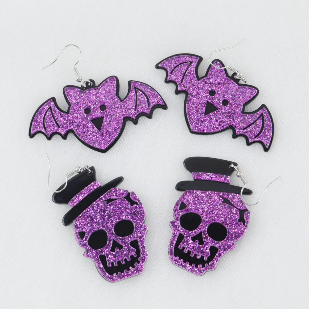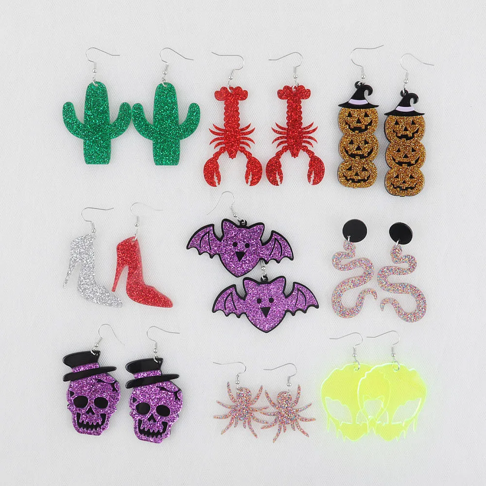 FishSheep фиолетовые блестящие акриловые бусины в форме черепа летучая мышь Тыква Висячие серьги для женщин милая красочная змея Омар большие серьги Модные ювелирные изделия