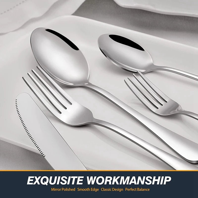 Главное для жизни: Этот набор серебряных изделий может удовлетворить все ваши потребности, независимо от того, используете ли вы его каждый день дома или планируете свадьбу, День благодарения или праздничный ужин, или есть Кофейня или небольшой причудливый ресторан, этот набор столовых приборов будет вашим украшением стола и обедом требует элегантного украшения. Кроме того, этот костюм также идеально подходит для дней рождения, праздников и подарков на новоселье.