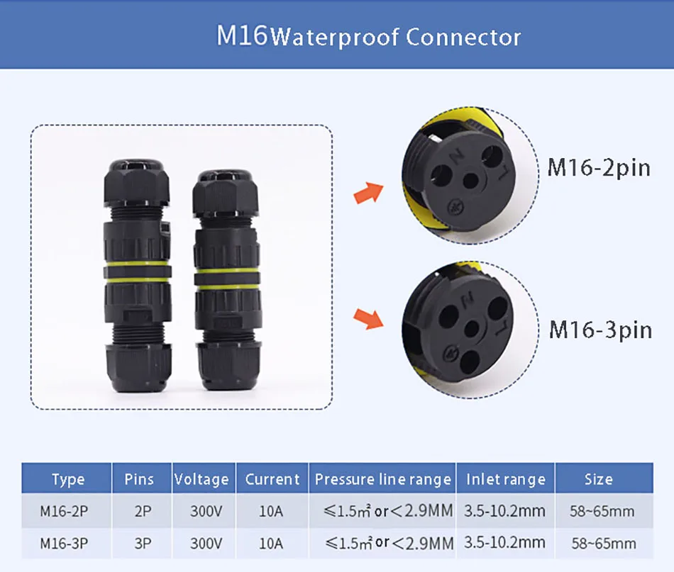 M16 Кабельный соединитель IP68 3pin 4pin 3,5-10,2 мм AC DC 300V 10A водонепроницаемый электрический соединитель герметичный огнестойкий распределительный ящик