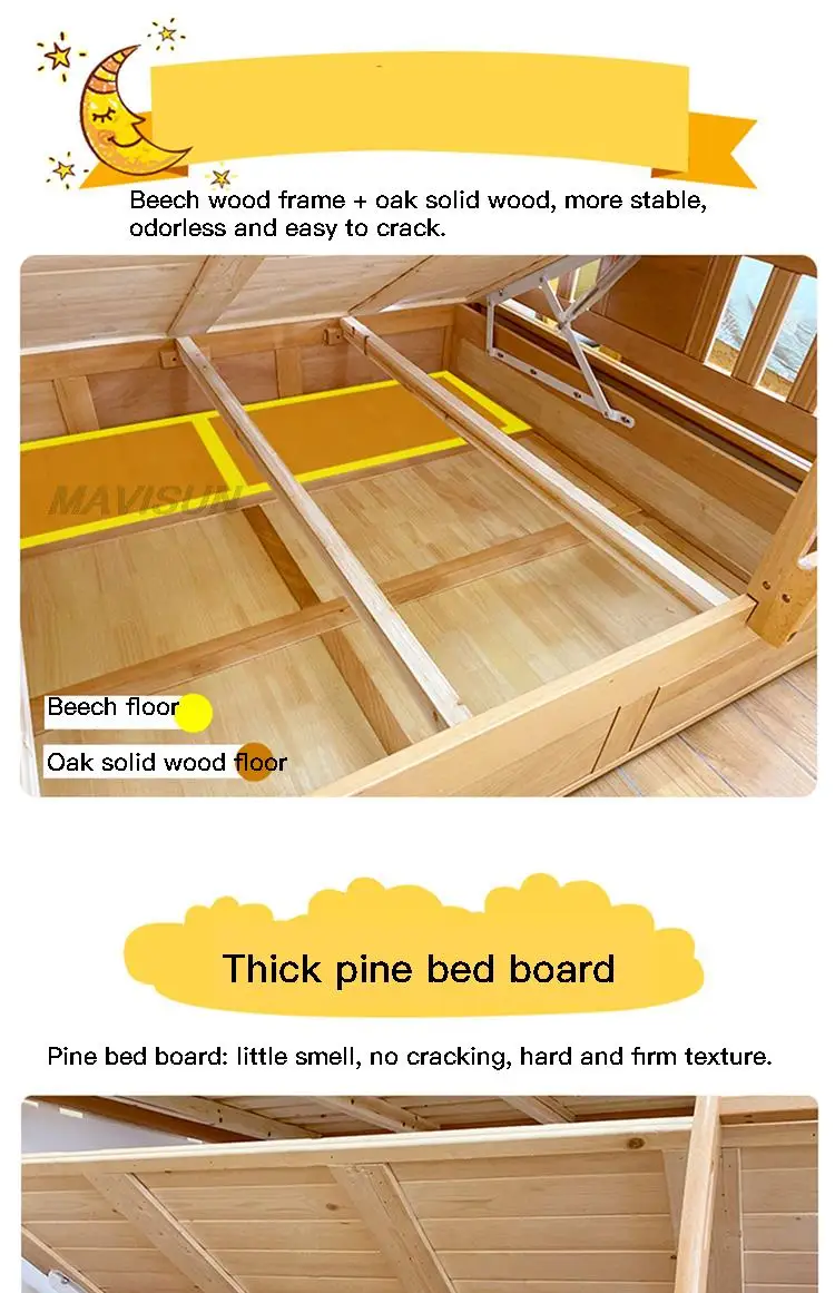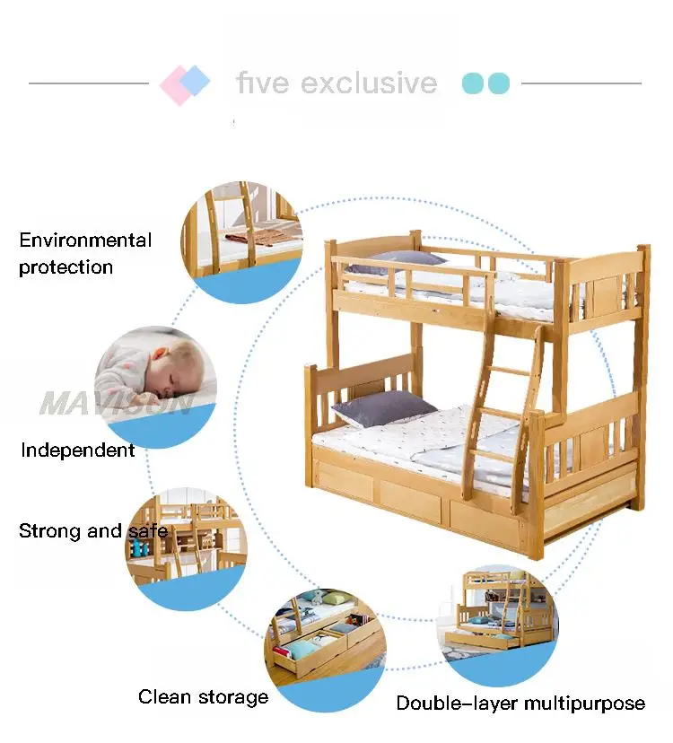 C. Утолщенная кровать из цельного дерева, забота о росте детей.