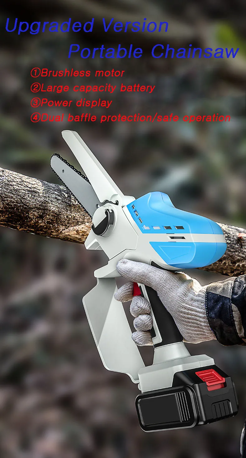 Мини-бензопила, бесщеточный, 21 в, перезаряжаемая литиевая батарея, портативная пилка, электрическая деревянная пила, электроинструменты для сада