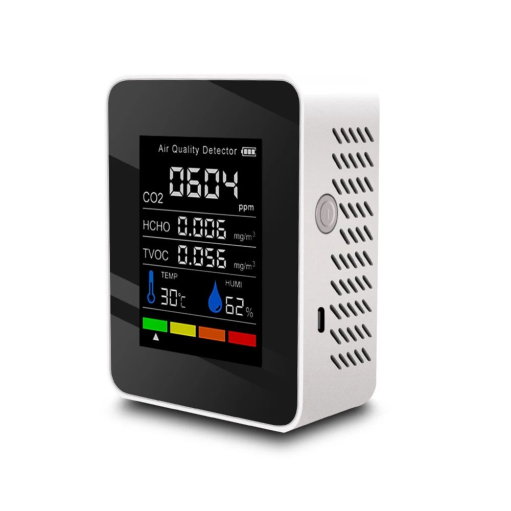 Большой ЖК-дисплей с подсветкой, вы можете видеть количество электроэнергии, значение CO2, значение TVOC, значение HCHO, температуру и влажность четко.