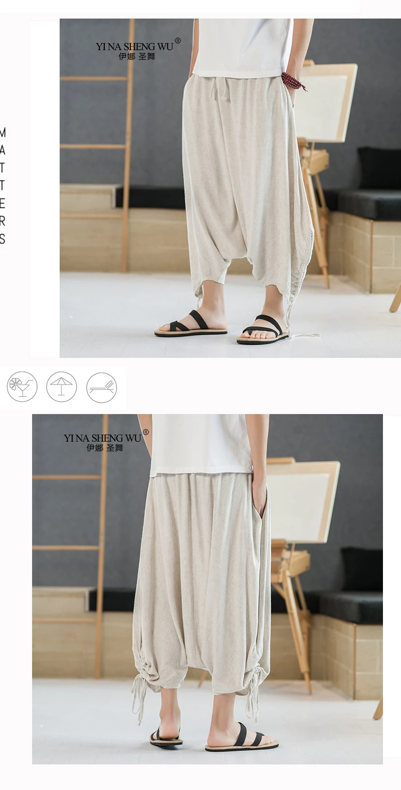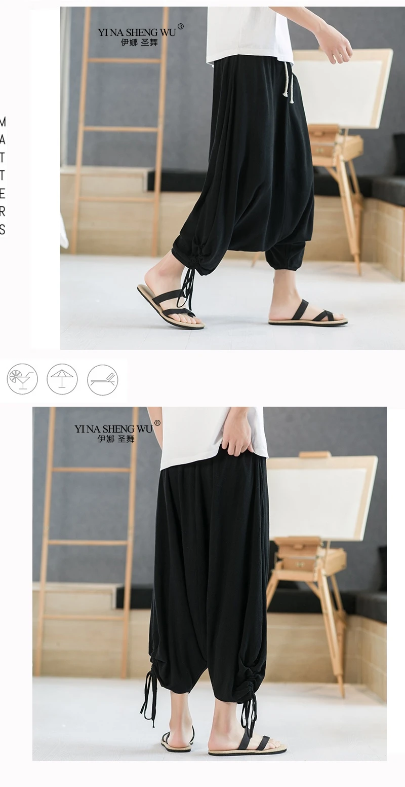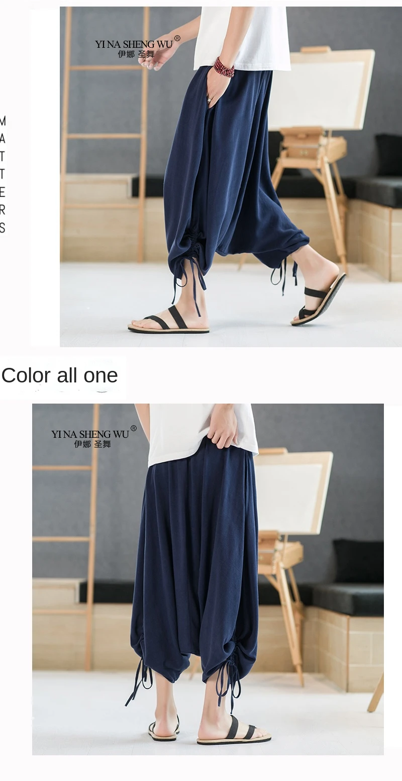 Modname = ckeditor Китайский Стиль льняные повседневные 7-точка брюки от «Harlan» в стиле ретро; Большие модные из хлопка и льна с трусы упакованы в соответствии с Новый стиль Стиль для мужчин в 2021; Сезон лето