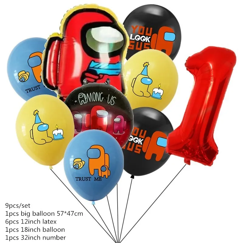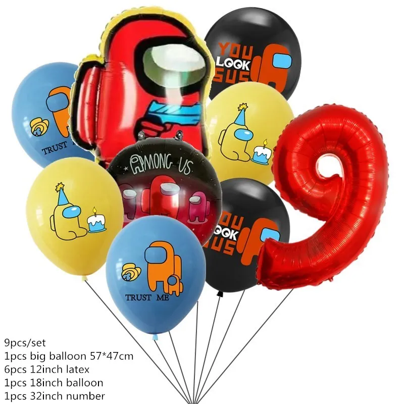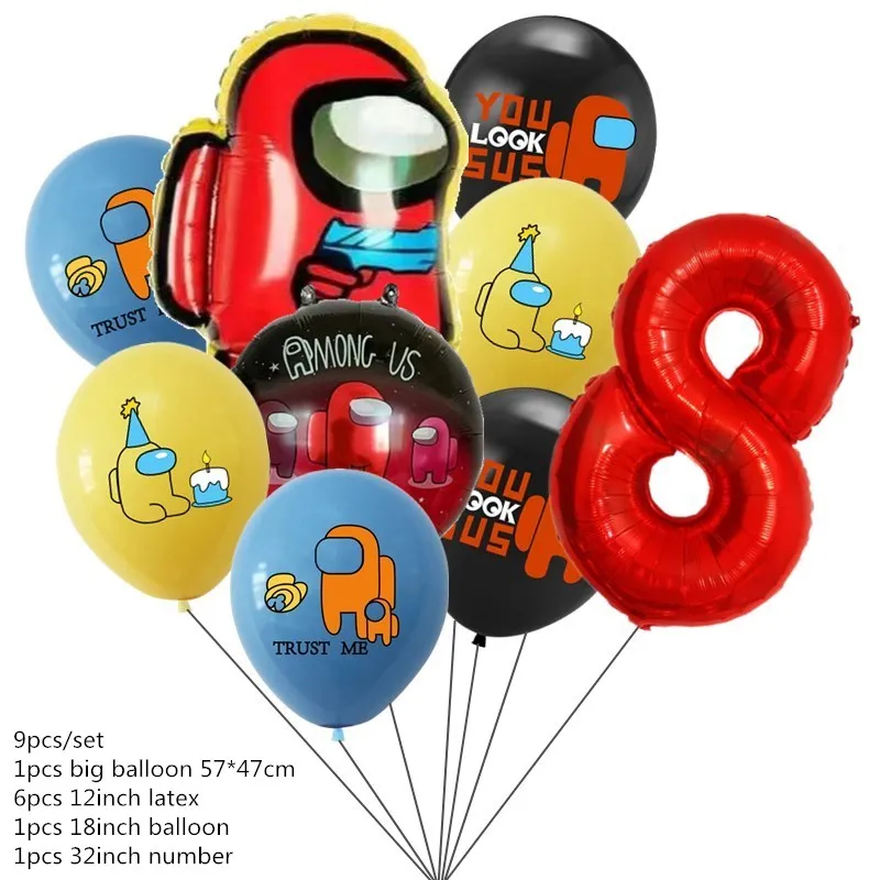 9pcs Amonged Foil Balloons Crewmate All Game Party Latex Ballons Us Cake Toppers Hero Happy Birthday Banner Decoration Boy Toy