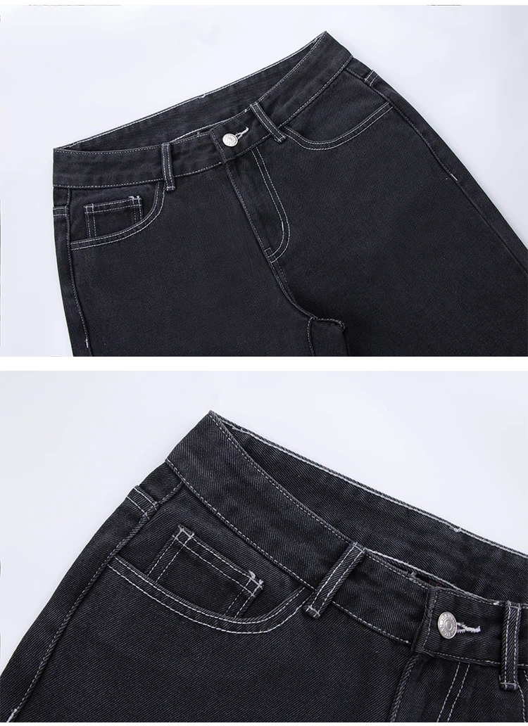 Женские джинсы в стиле пэчворк Стрейчевые прямые брюки из денима с разрезом