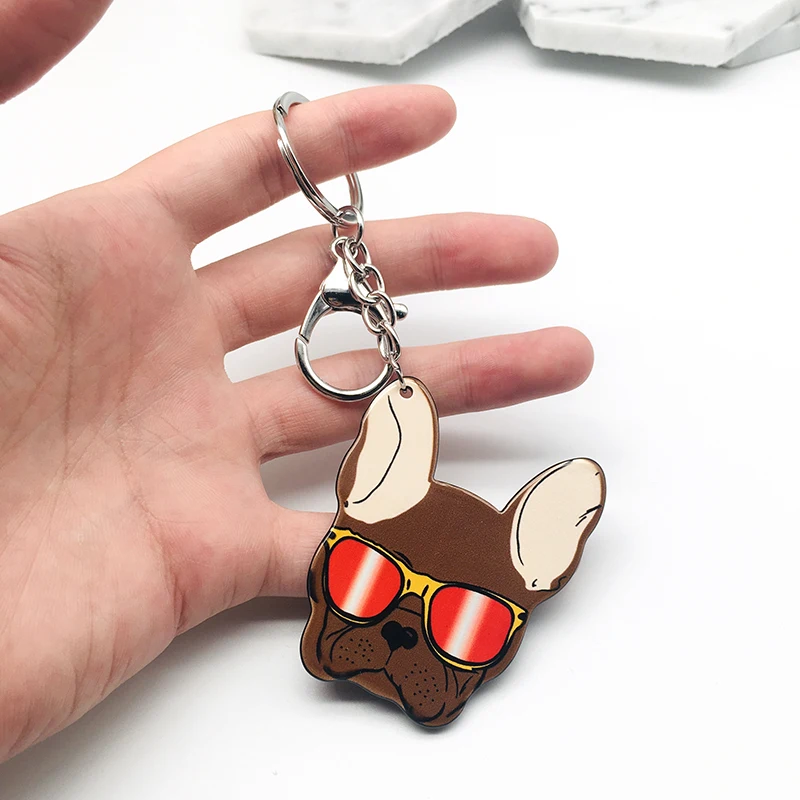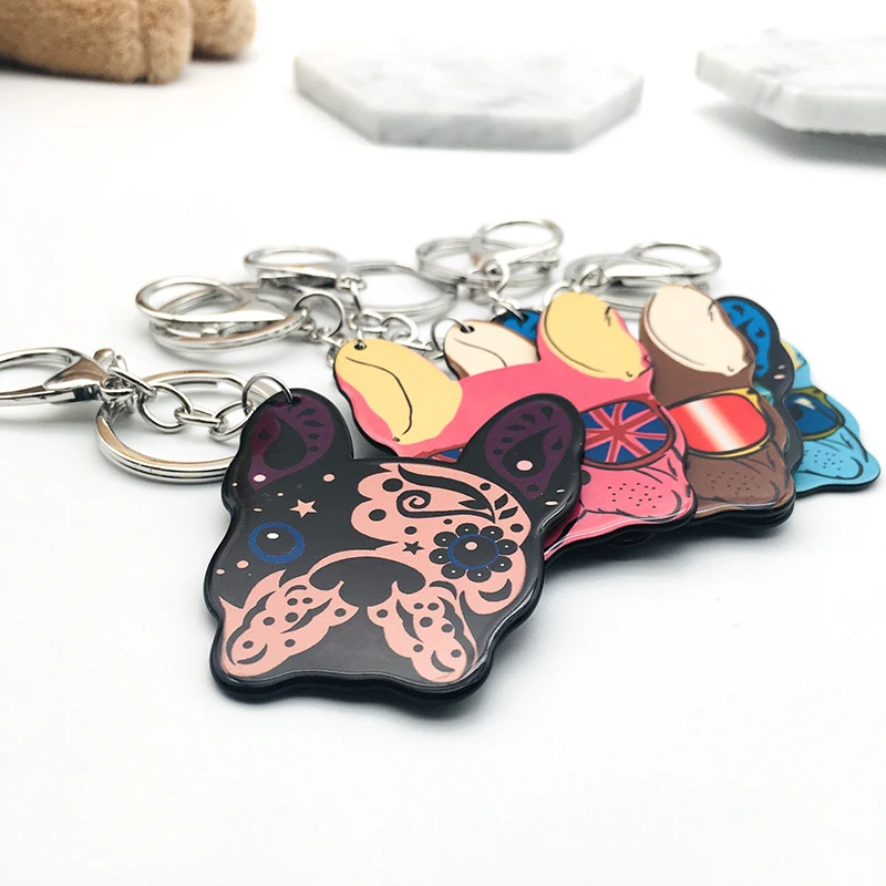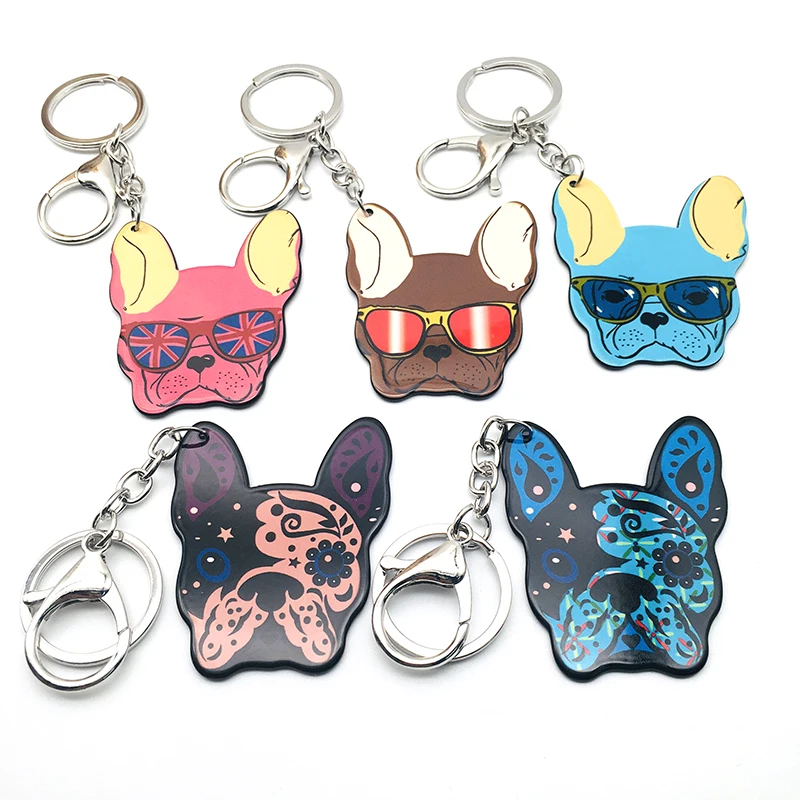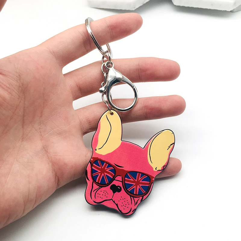 Акрил французский Бульдог мопса брелок для ключей кольцо животное ювелирные изделия для мужчин женщин девушка сумка автомобиля очарование оптом