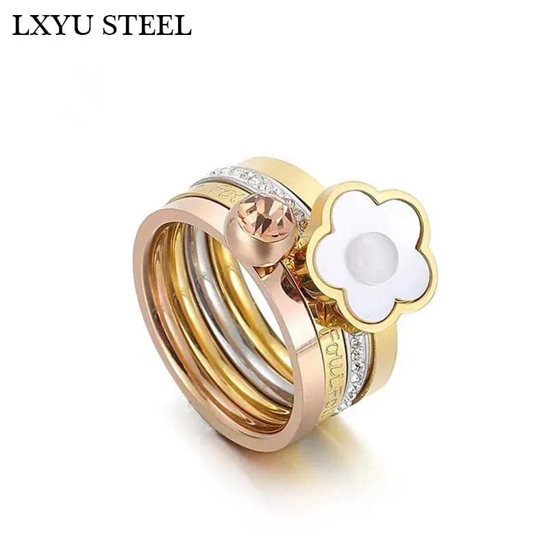 4 in 1 Ring Multi-layer Mujer Anillos Rings Mix Color Stainless Steel Bands Flower Rings For Best friends Splittable Friendship