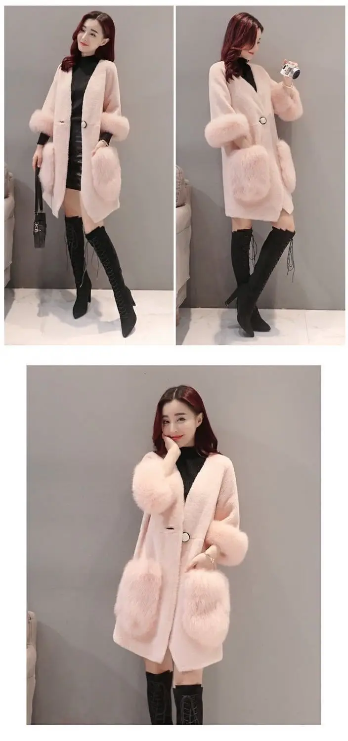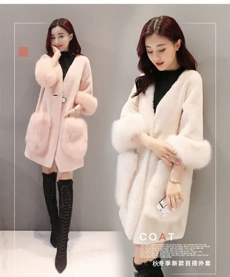 Новинка 2021, зимнее меховое пальто, Женское пальто из меха ягненка и норки размера плюс, свободная куртка, пальто, пальто из искусственного меха лисы, верхняя одежда средней длины