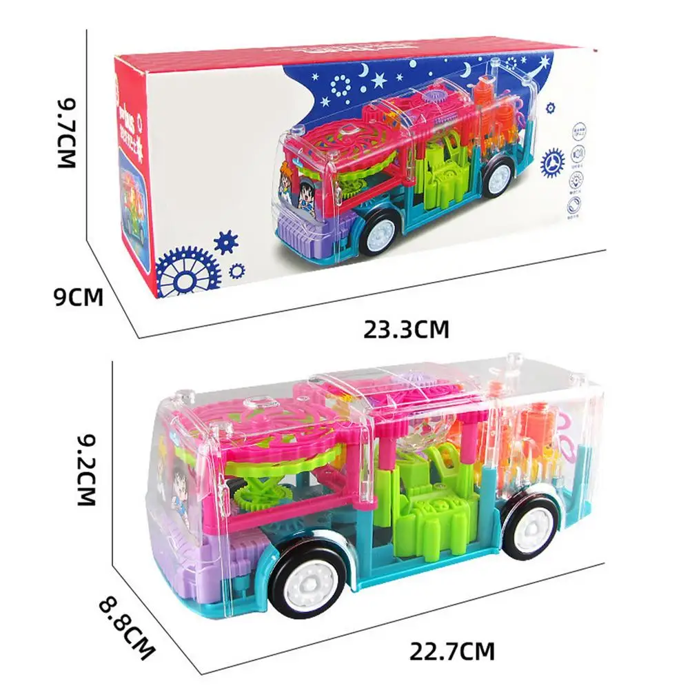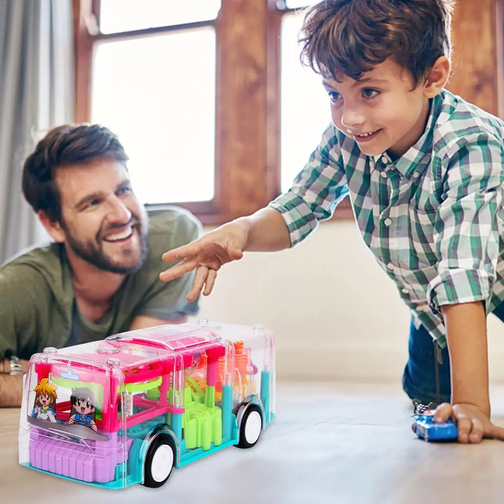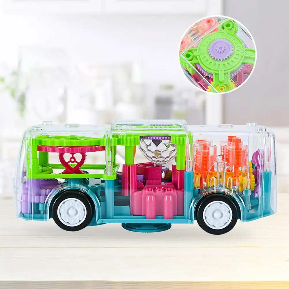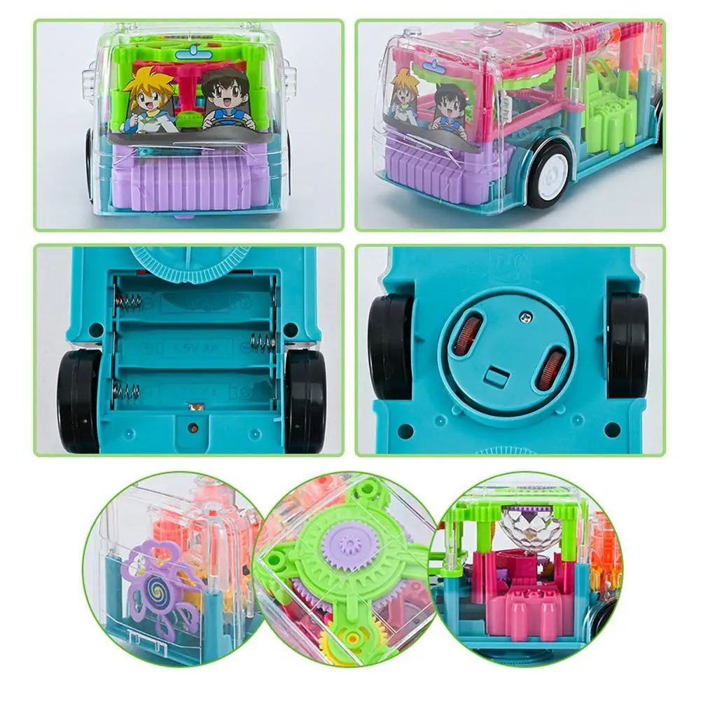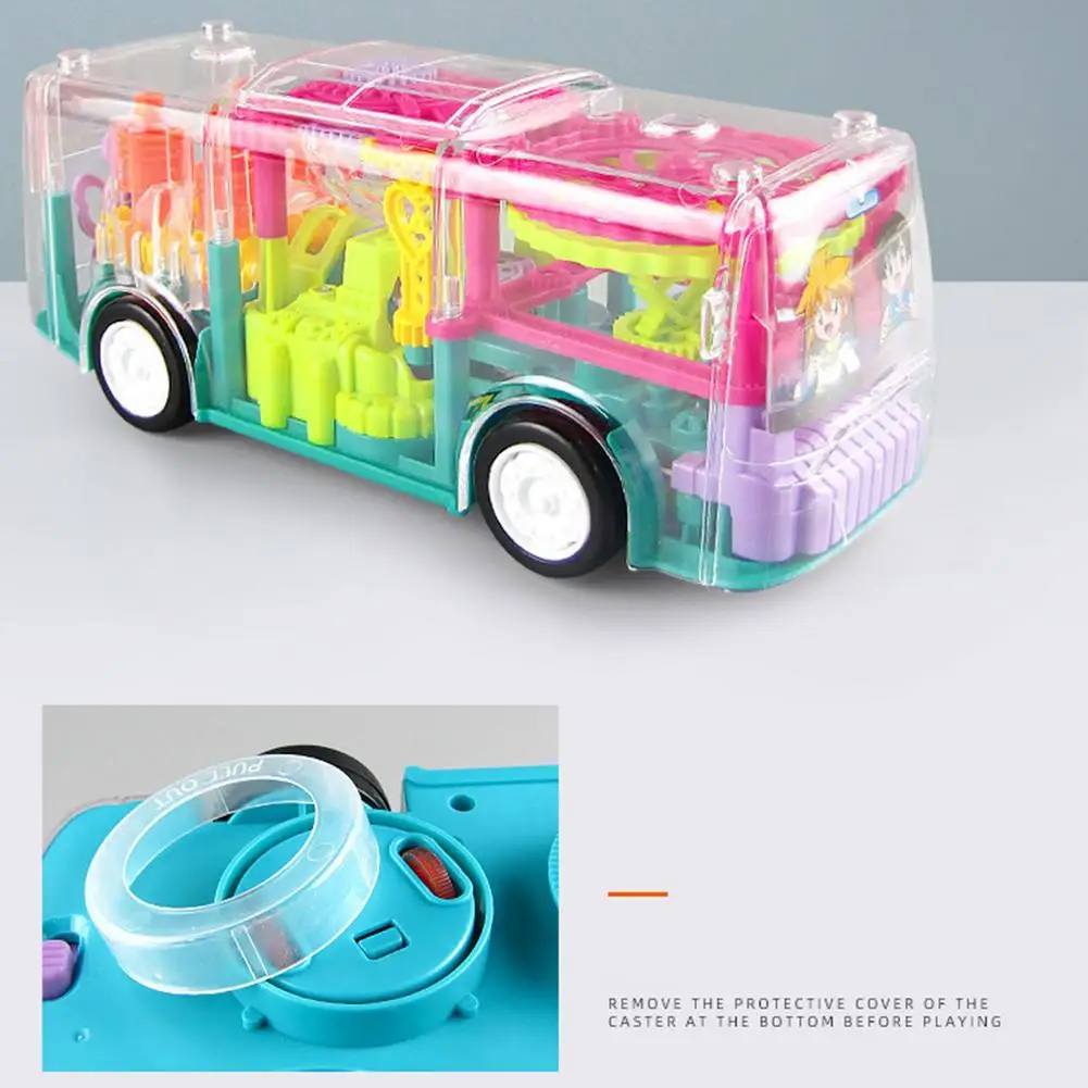 Уникальный прозрачный игрушечный автобус: вы можете увидеть мягкий и прозрачный внутренний игрушечный автобус снаружи. Наш игрушечный автобус поможет детям знать все виды механических вещей в очень юном возрасте. Эффект с зубчатым приводом способствует развитию навыков наблюдения за детьми.