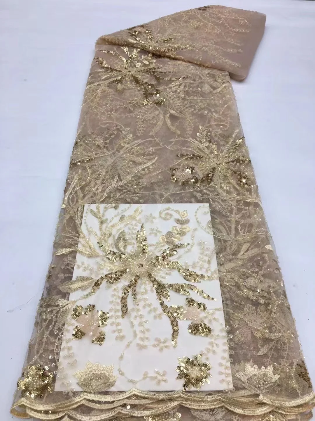 Золотые бусины блестки вышивка французская сетка Африканское кружево