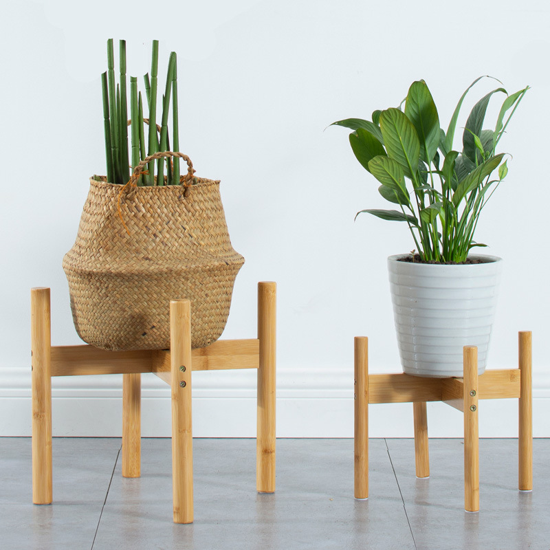 Новый портативный одиночный отсек, бамбуковая подставка для цветов, мини держатель для цветочных горшков, полка для растительного горшка, четырехногая ваза, цветочный горшок, скользящий кронштейн