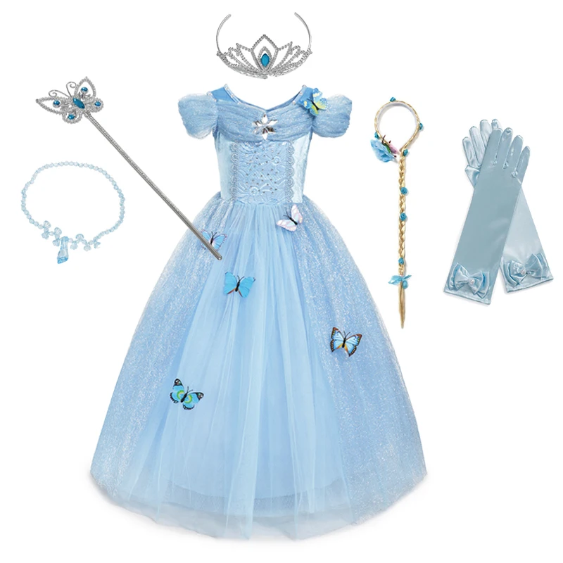 Платье принцессы Золушки для девочек; Подарок на день рождения; Нарядное платье на Хэллоуин; Карнавальный костюм; Детская одежда; Вечерние платья