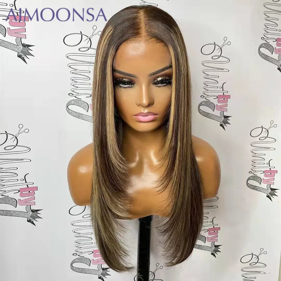 Выделите парик Ombre прямые парики человеческих волос парики для черных женщин 180% предварительно сорванные 4x4 кружева закрытие парик бразильские волосы Remy