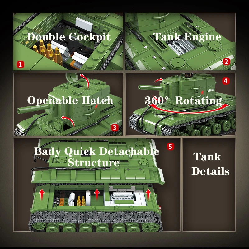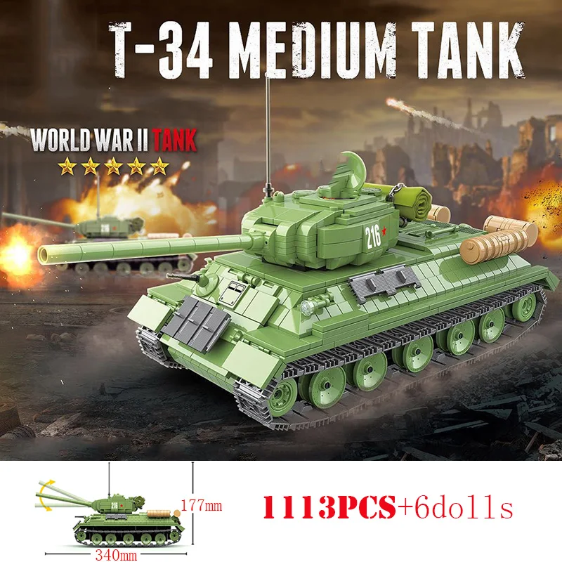 Военный танк Россия T-34 средний танк строительные блоки WW2 солдат армии оружие KV-2 тяжелый танк Кирпичи Детские игрушки Подарки для детей