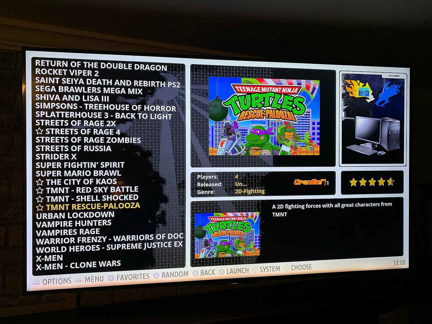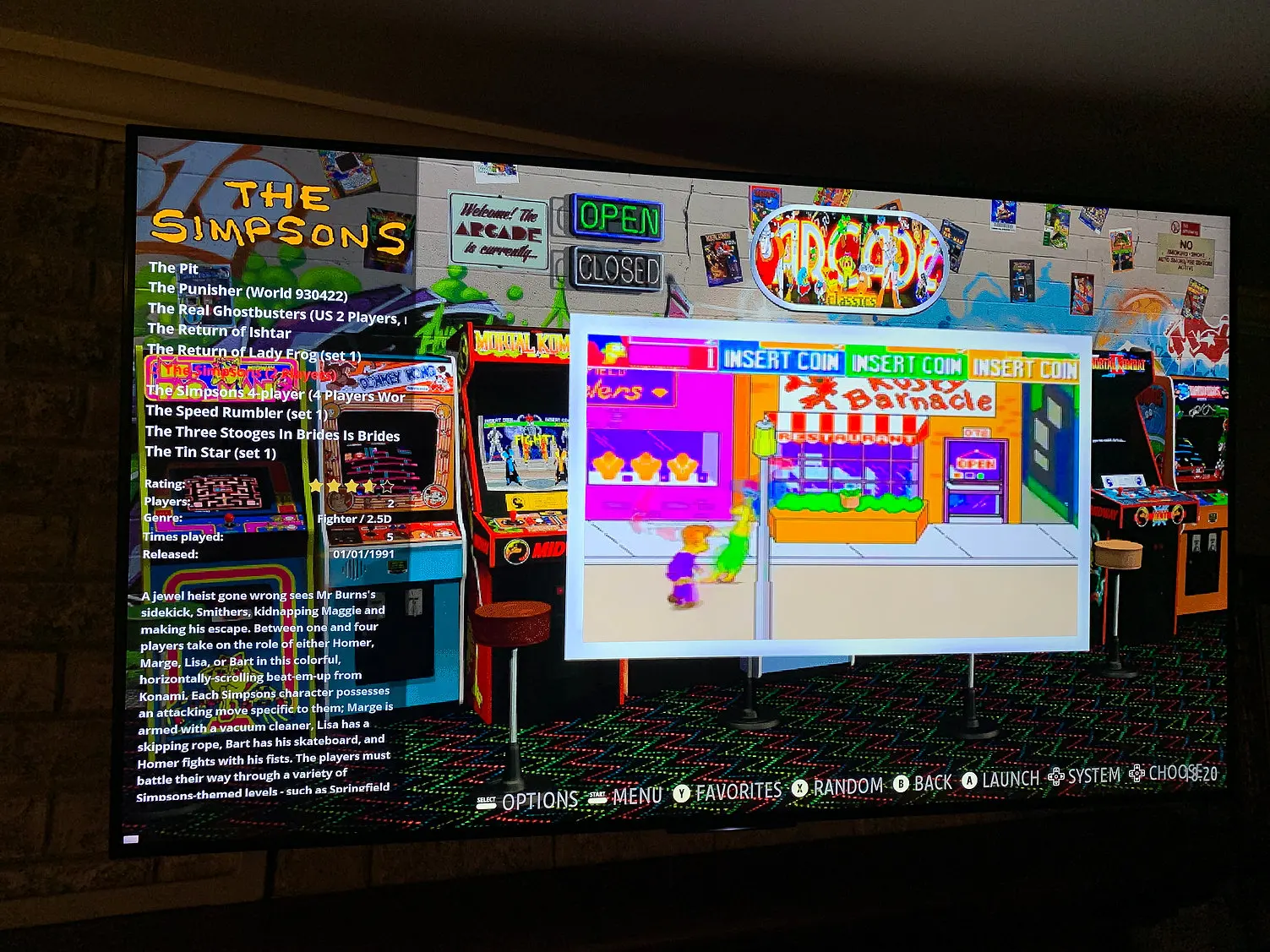 Игры имеют видео-предварительный просмотр, которые также воспроизводятся, когда вы прокручиваете вниз через список игр в каждой системе. Потрясающие фоновые темы меню загружены, которые могут быть легко переключены. 40 тем, которые я предварительно установила. Игры позволяют сохранить игру в любом месте в игре. Игры можно идентифицировать как «Избранное», просто нажав кнопку Y с помощью игры, выделенной в меню, чтобы их можно было легко найти в любимой папке или сортировать по системе. Потрясающие «пользовательские коллекции» уже настроены и могут быть изменены. В избранных аркадных коллекциях есть сотни лучших аркадных игр (из тысячи + в системе). Проект Безель установлен, вместе с другими рамками, они могут быть легко отключены, но по умолчанию.